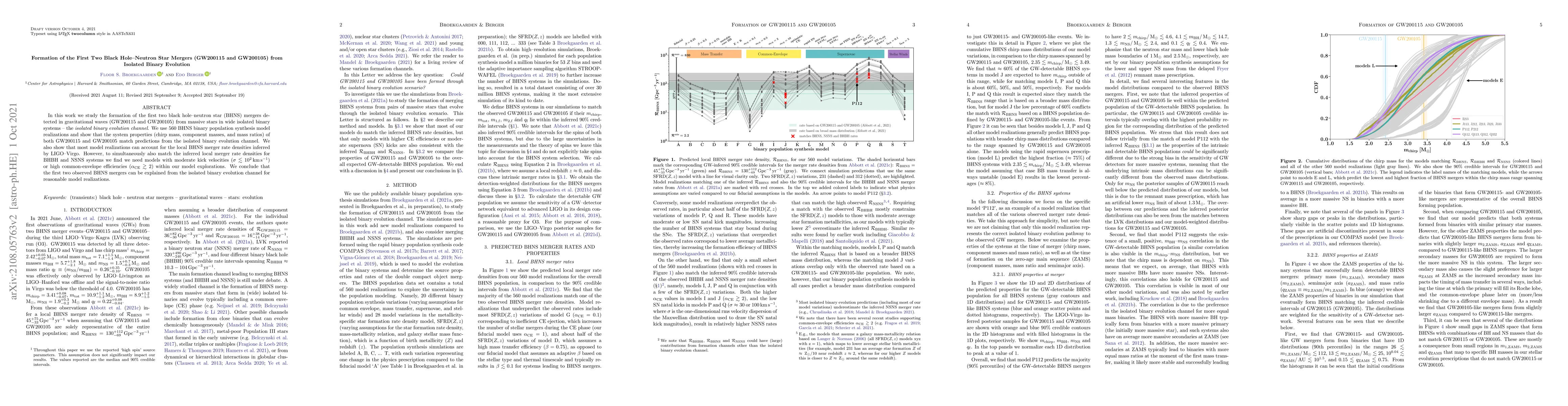 Two black hole-neutron star mergers (GW200115 and GW200105) were formed through isolated binary evolution in massive stars, matching predictions and accounting for merger rate densities.