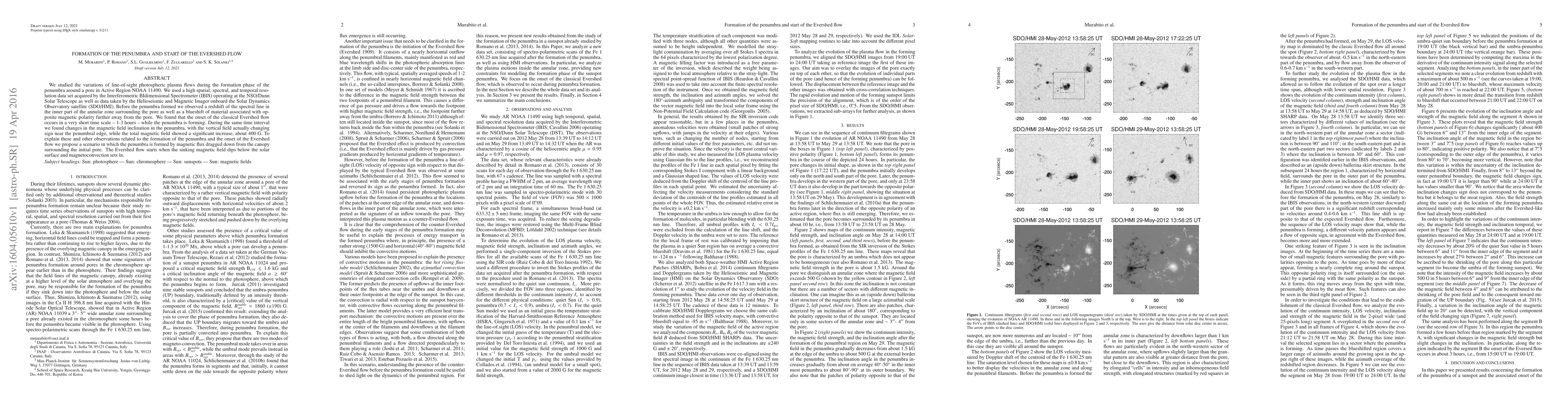 This study investigates the formation of a penumbra around a pore in Active Region NOAA 11490, revealing a redshift and blueshift in spectral lines preceding the penumbra's appearance. The onset of the Evershed flow occurs within 1-3 hours of penumbra formation, accompanied by significant magnetic field changes. The researchers propose that the penumbra forms from magnetic flux dragged down from the pore's canopy, while the Evershed flow initiates when the magnetic field dips below the solar surface, triggering magnetoconvection.