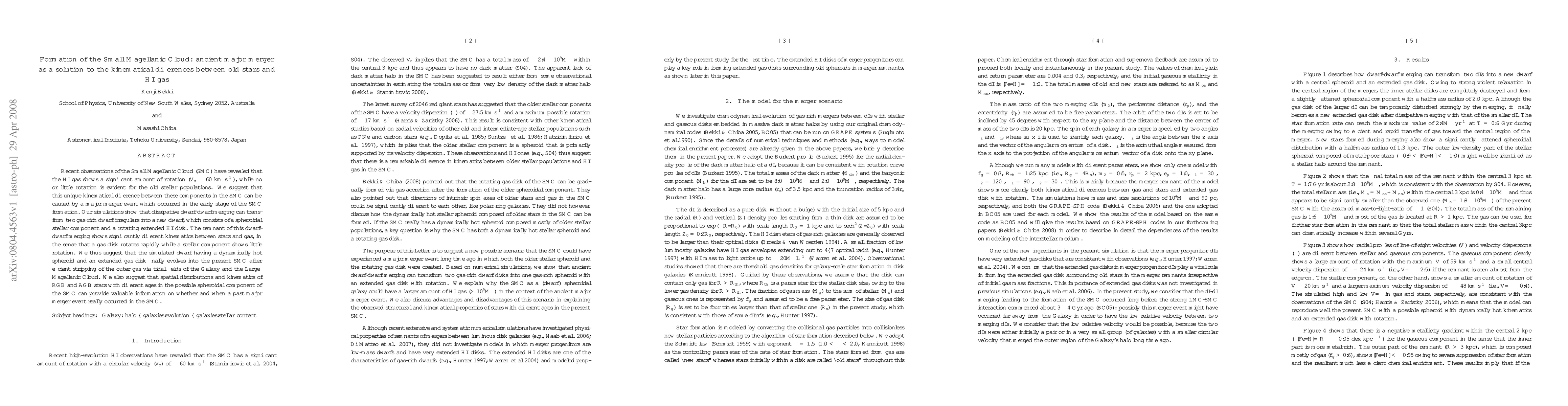 Recent observations of the Small Magellanic Cloud (SMC) have revealed that the HI gas shows a significant amount of rotation (V_c 60 km/s), while no or little rotation is evident for the old stellar populations. We suggest that this unique kinematical difference between these components in the SMC can be caused by a major merger event which occurred in the early stage of the SMC formation. Our simulations show that dissipative dwarf-dwarf merging can transform two gas-rich dwarf irregulars into a new dwarf, which consists of a spheroidal stellar component and a rotating extended HI disk. The remnant of this dwarf-dwarf merging shows significantly different kinematics between stars and gas, in the sense that a gas disk rotates rapidly while a stellar component shows little rotation. We thus suggest that the simulated dwarf having a dynamically hot spheroid and an extended gas disk finally evolves into the present SMC after efficient stripping of the outer gas via tidal fields of the Galaxy and the Large Magellanic Cloud. We also suggest that spatial distributions and kinematics of RGB and AGB stars with different ages in the possible spheroidal component of the SMC can provide valuable information on whether and when a past major merger event really occurred in the SMC.