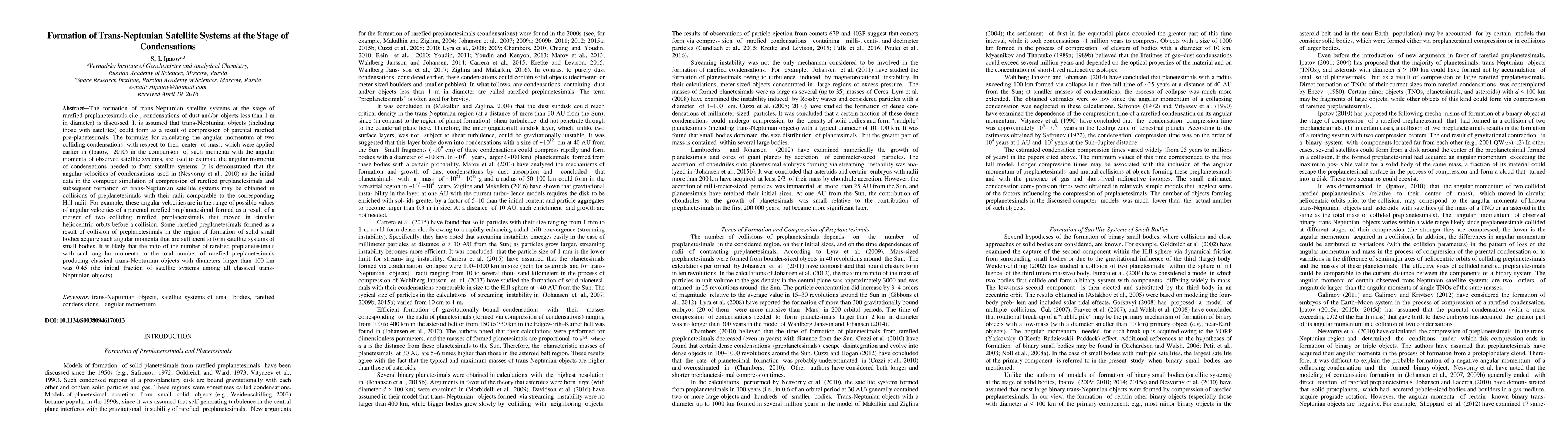 This paper explores the formation of trans-Neptunian satellite systems from rarefied preplanetesimals, proposing that these systems arise from the compression of such condensations. The study uses angular momentum calculations to estimate the conditions under which these condensations could form satellites, suggesting that the initial angular velocities observed in simulations can be achieved through collisions of preplanetesimals with radii comparable to their Hill radii.