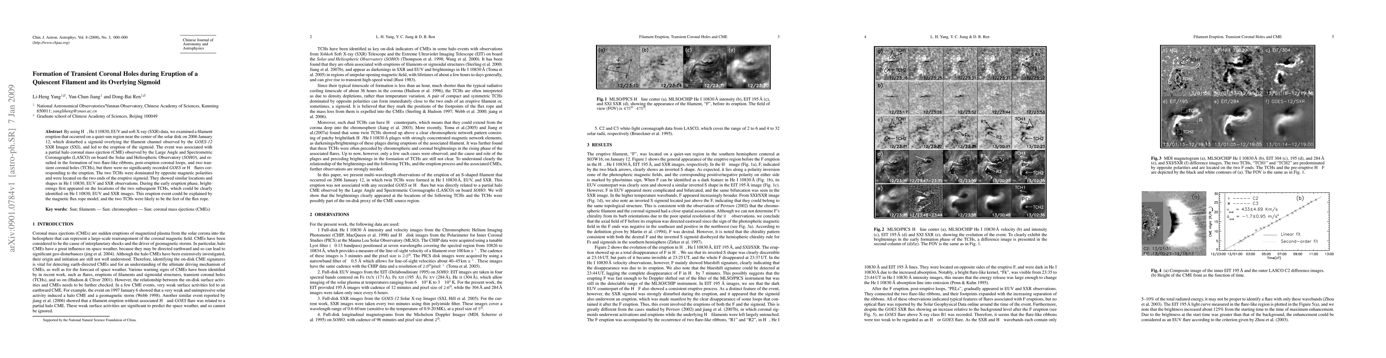 This study investigates a filament eruption on January 12, 2006, which led to the formation of transient coronal holes (TCHs) and a partial halo coronal mass ejection. The TCHs, characterized by opposite magnetic polarities, appeared at the ends of the eruptive sigmoid and were identified in He I 10830, EUV, and SXR data, suggesting they are the feet of the magnetic flux rope involved in the eruption.