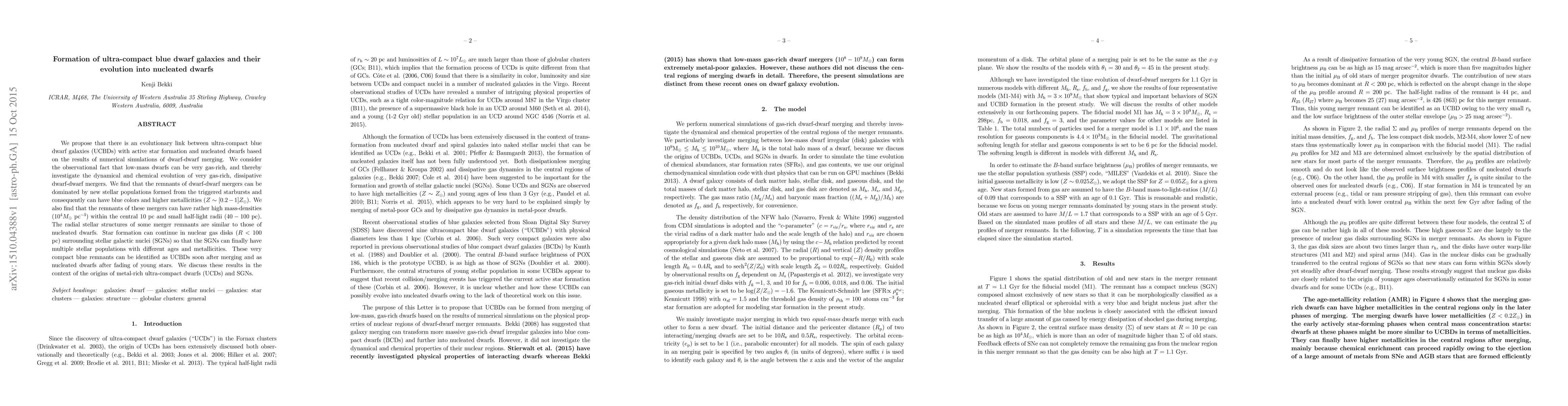 This paper proposes an evolutionary link between ultra-compact blue dwarf galaxies (UCBDs) and nucleated dwarfs, suggesting that gas-rich dwarf-dwarf mergers trigger starbursts leading to blue, metal-rich remnants with high central densities and small sizes, resembling nucleated dwarfs. The study finds that these remnants can evolve into UCBDs initially and then into nucleated dwarfs as young stars fade.