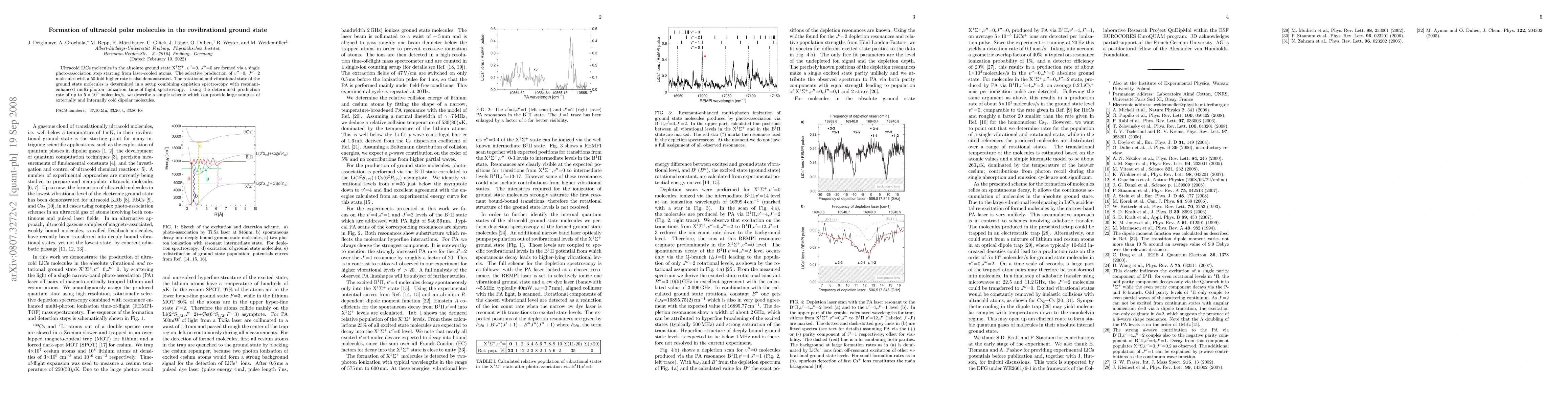 This paper reports the formation of ultracold LiCs molecules in the rovibrational ground state via a single photo-association step from laser-cooled atoms, with a notable 50-fold higher rate for v'=0, J'=2 molecules. The study employs a combination of depletion spectroscopy and resonant-enhanced multi-photon ionization time-of-flight spectroscopy to determine the state of the molecules.