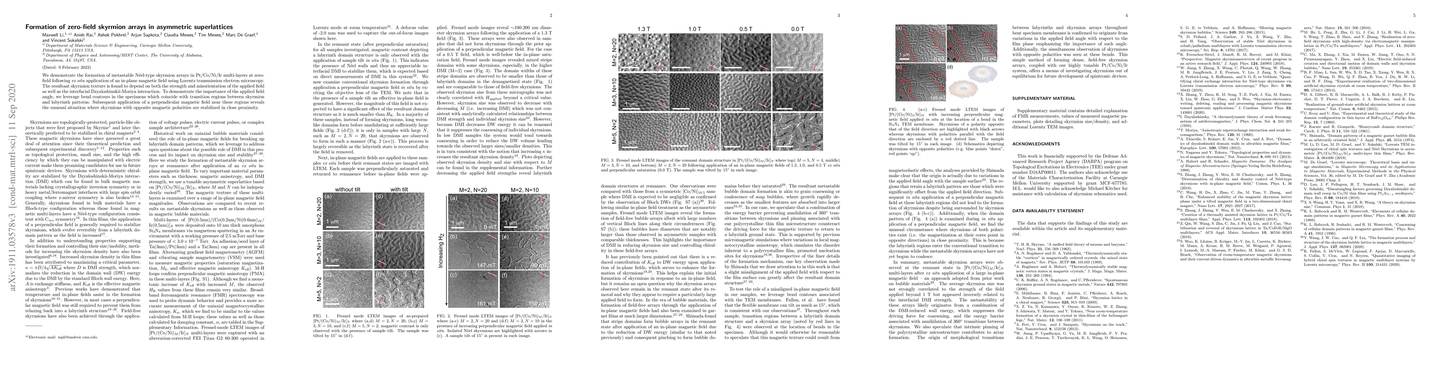 Researchers create and study zero-field skyrmion arrays in layered materials, finding that magnetic fields influence their formation and stability, leading to unusual coexistence of opposite-polarity skyrmions.