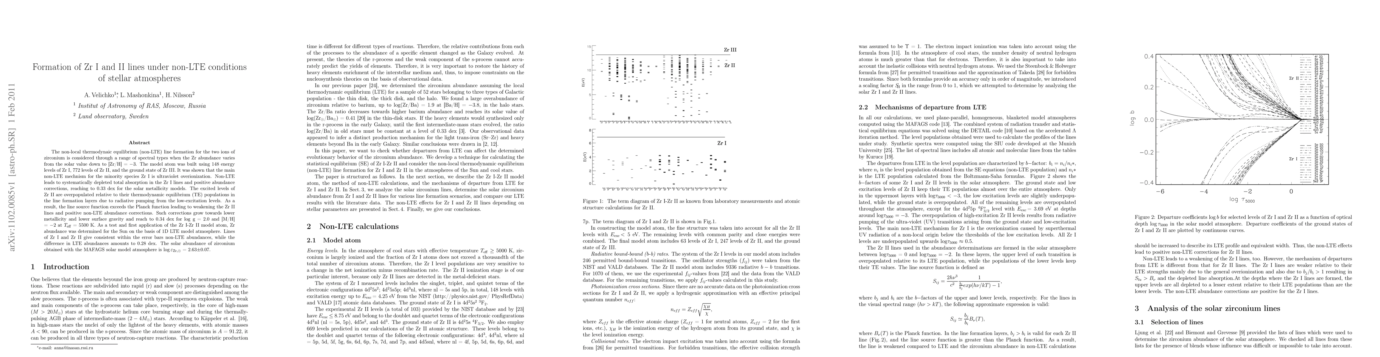 This paper investigates the non-LTE line formation of zirconium ions (Zr I and Zr II) in stellar atmospheres, revealing that non-LTE effects lead to depleted absorption in Zr I lines and overpopulated excited levels in Zr II, resulting in positive abundance corrections up to 0.34 dex for low metallicity stars. The study also determines the solar zirconium abundance as log eps(Zr) = 2.63±0.07, showing consistency between non-LTE and LTE models.