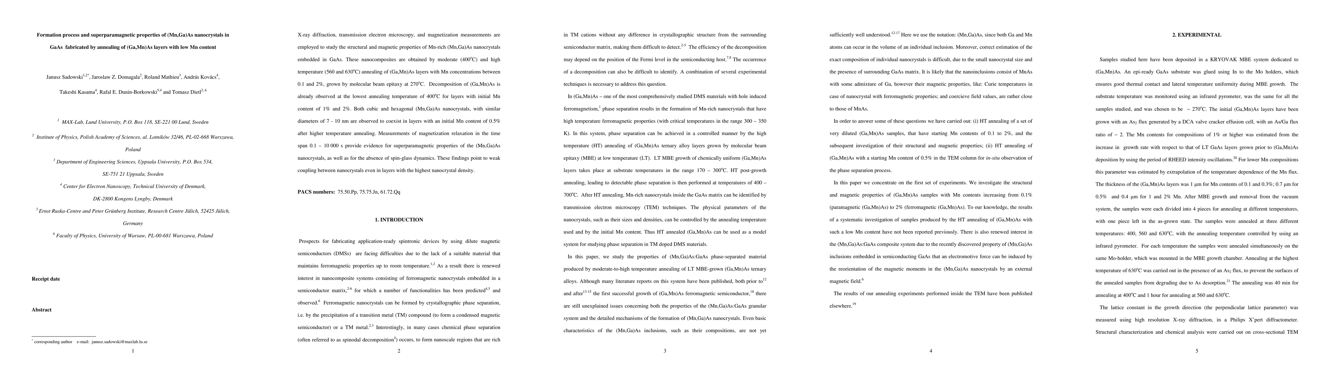 This study investigates the formation and magnetic properties of (Mn,Ga)As nanocrystals in GaAs via annealing of (Ga,Mn)As layers, revealing the coexistence of cubic and hexagonal nanocrystals and their superparamagnetic behavior without spin-glass dynamics, indicating weak coupling between the nanocrystals.