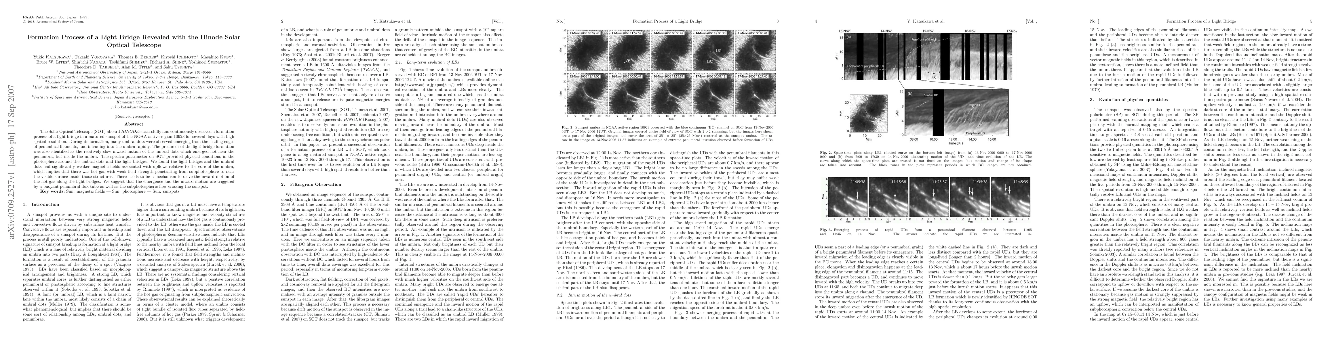 This study reveals the formation of a light bridge in a sunspot using high-resolution observations from HINODE's Solar Optical Telescope, identifying emerging umbral dots and weak magnetic fields, suggesting a buoyant penumbral flux tube and subphotospheric flow drive the process.
