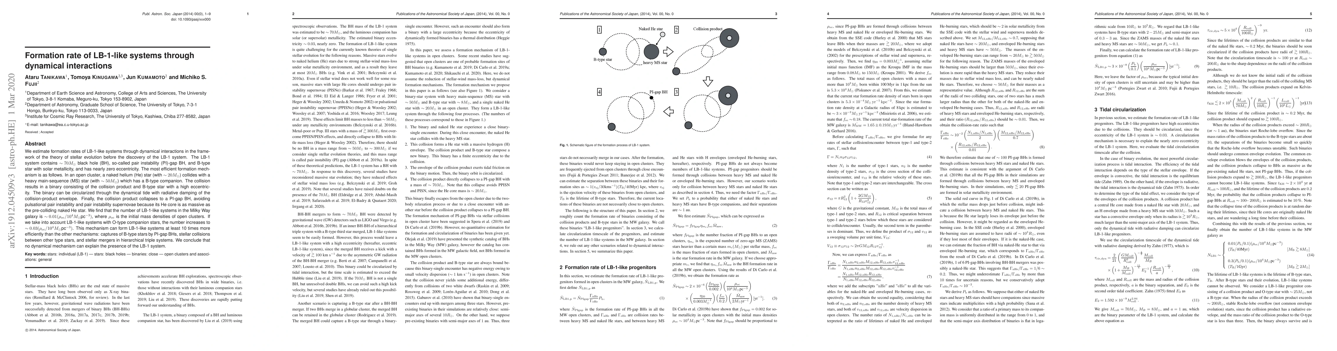 We estimate formation rates of LB-1-like systems through dynamical interactions in the framework of the theory of stellar evolution before the discovery of the LB-1 system. The LB-1 system contains $\sim 70M_\odot$ black hole (BH), so-called pair instability (PI)-gap BH, and B-type star with solar metallicity, and has nearly zero eccentricity. The most efficient formation mechanism is as follows. In an open cluster, a naked helium (He) star (with $\sim 20M_\odot$) collides with a heavy main-sequence (MS) star (with $\sim 50M_\odot$) which has a B-type companion. The collision results in a binary consisting of the collision product and B-type star with a high eccentricity. The binary can be circularized through the dynamical tide with radiative damping of the collision-product envelope. Finally, the collision product collapses to a PI-gap BH, avoiding pulsational pair instability and pair instability supernovae because its He core is as massive as the pre-colliding naked He star. We find that the number of LB-1-like systems in the Milky Way galaxy is $\sim 0.01 (\rho_{\rm oc} / 10^4 M_\odot \mbox{pc}^{-3})$, where $\rho_{\rm oc}$ is the initial mass densities of open clusters. If we take into account LB-1-like systems with O-type companion stars, the number increases to $\sim 0.03 (\rho_{\rm oc} / 10^4 M_\odot \mbox{pc}^{-3})$. This mechanism can form LB-1-like systems at least 10 times more efficiently than the other mechanisms: captures of B-type stars by PI-gap BHs, stellar collisions between other type stars, and stellar mergers in hierarchical triple systems. We conclude that no dynamical mechanism can explain the presence of the LB-1 system.