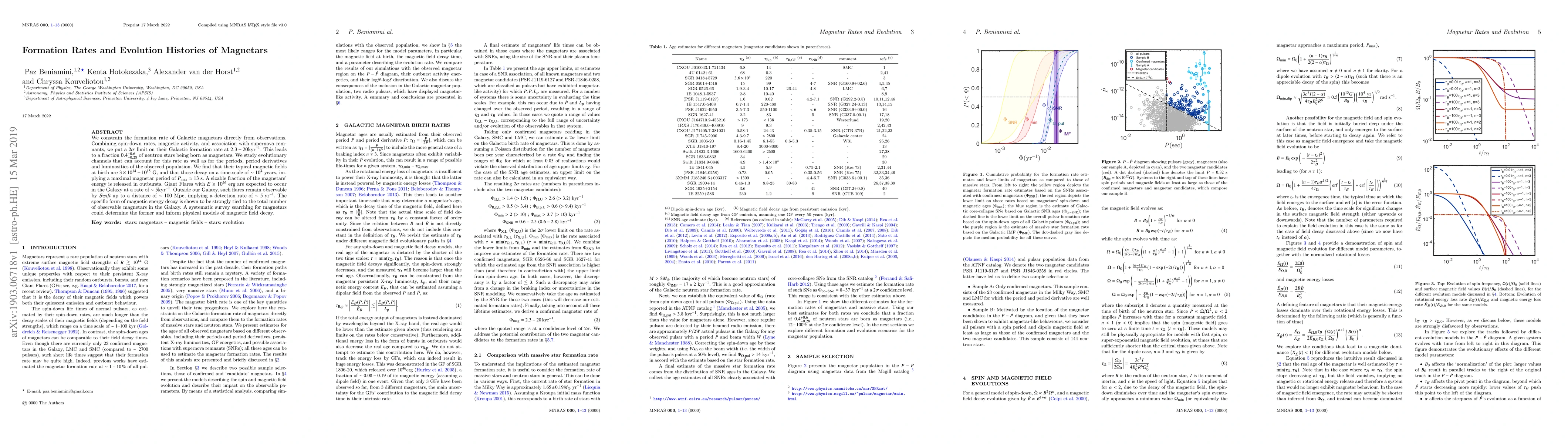 This research estimates the Galactic formation rate of magnetars to be between $2.3-20\mbox{kyr}^{-1}$ and finds that $0.4_{-0.28}^{+0.6}$ of neutron stars become magnetars. It also explores their evolution, magnetic field decay, and the occurrence of giant flares, suggesting a detection rate of $\sim 5\mbox{yr}^{-1}$ for such flares in external galaxies.
