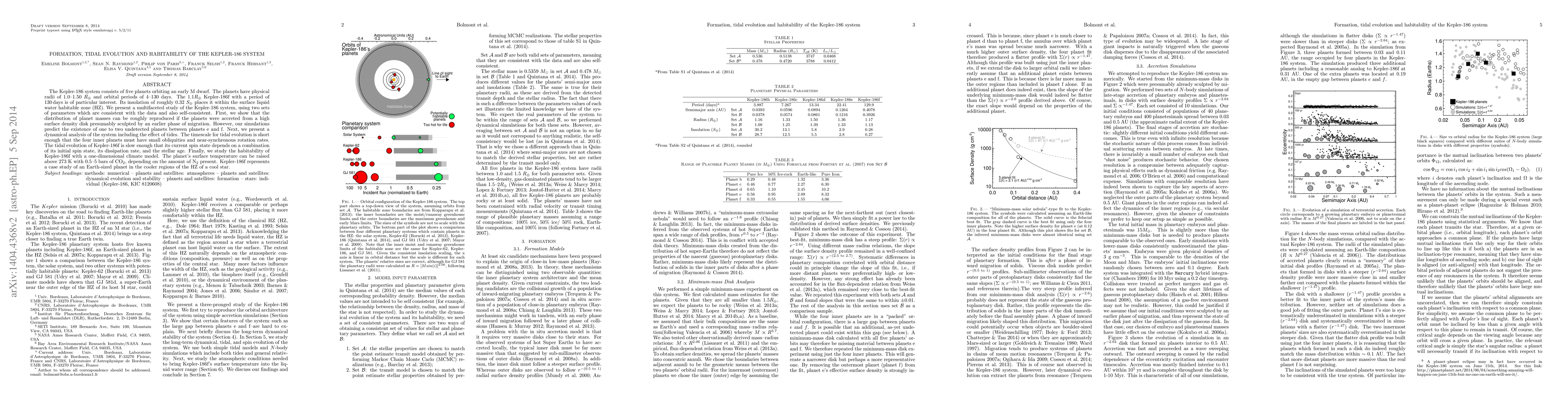 The Kepler-186 system, with five planets orbiting an early-M dwarf, includes the Earth-sized Kepler-186f in its habitable zone. The study reveals the system's formation via accretion in a high-surface density disk, predicts undetected planets, and analyzes tidal evolution leading to small obliquities. Kepler-186f's habitability is enhanced by CO$_2$ levels, making it a notable Earth-sized candidate in a cool star's habitable zone.