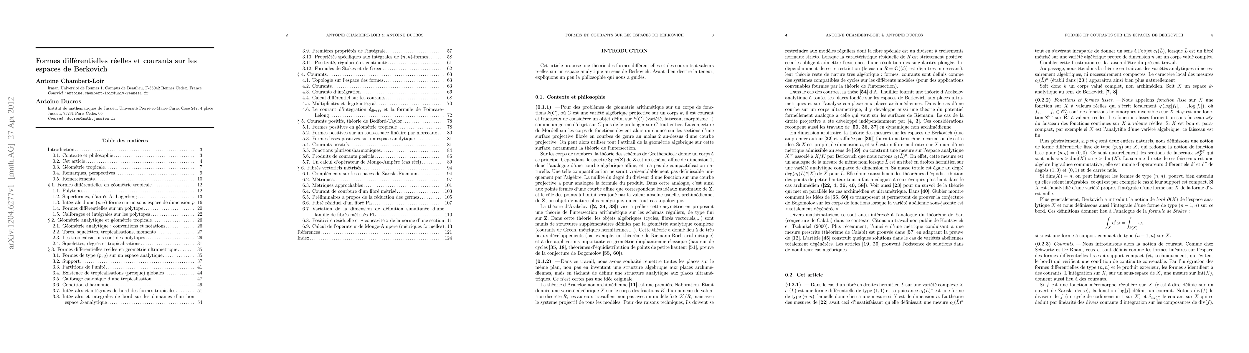Summary: This paper develops a theory of real differential forms and currents on Berkovich spaces, mirroring the complex differential forms theory, including integrals, Poincaré-Lelong formula, and Chern forms of metrized line bundles.