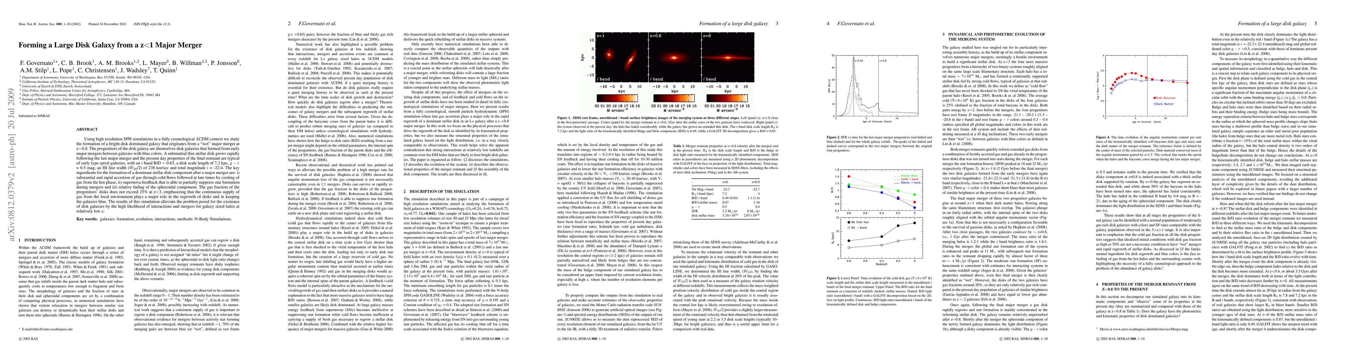 This paper uses high-resolution simulations to explore the formation of a large disc galaxy from a major merger at z=0.8, showing that substantial gas accretion and supernova feedback are key to developing a dominant stellar disk. The final galaxy exhibits properties typical of early-type spirals, resolving the challenge of maintaining disk galaxies amidst frequent mergers.