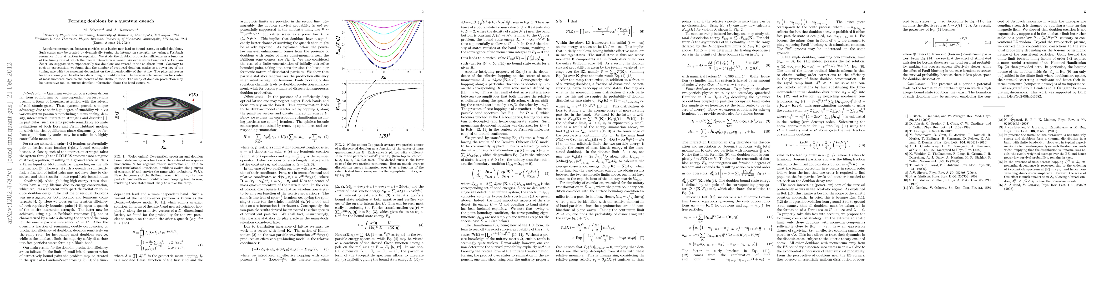 Repulsive interactions between particles on a lattice may lead to bound states, so called doublons. Such states may be created by dynamically tuning the interaction strength, e.g. using a Feshbach resonance, from attraction to repulsion. We study the doublon production efficiency as a function of the tuning rate at which the on-site interaction is varied. An expectation based on the Landau- Zener law suggests that exponentially few doublons are created in the adiabatic limit. Contrary to such an expectation, we found that the number of produced doublons scales as a power law of the tuning rate with the exponent dependent on the dimensionality of the lattice. The physical reason for this anomaly is the effective decoupling of doublons from the two-particle continuum for center of mass momenta close to the corners of the Brillouin zone. The study of doublon production may be a sensitive tool to extract detailed information about the band structure.