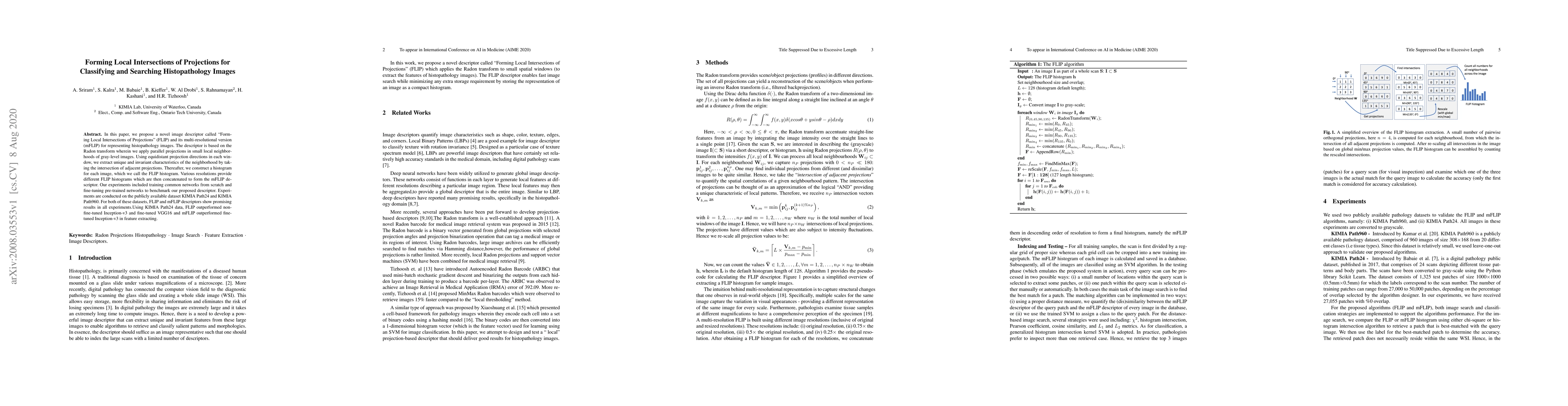 A new image descriptor called FLIP is proposed for classifying and searching histopathology images, outperforming existing methods in experiments on publicly available datasets KIMIA Path24 and KIMIA Path960.