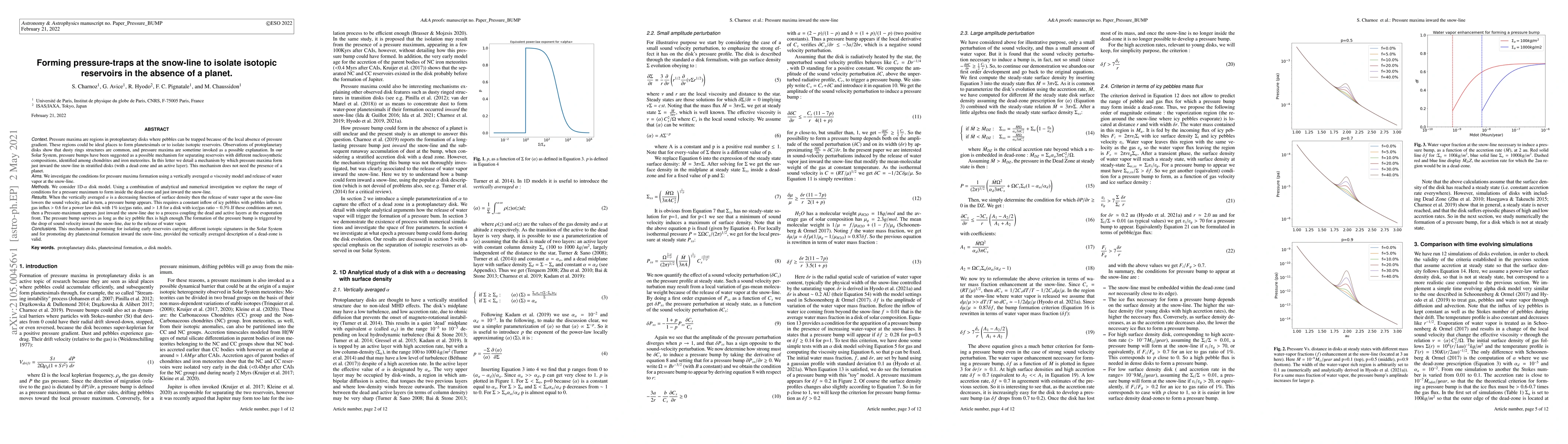 This paper proposes a mechanism for forming pressure maxima in protoplanetary disks just inward the snow-line, without the need for a planet. It shows that a drop in sound velocity due to water vapor release can create a pressure bump, provided a sufficient influx of icy pebbles relative to the gas influx, thus isolating isotopic reservoirs.
