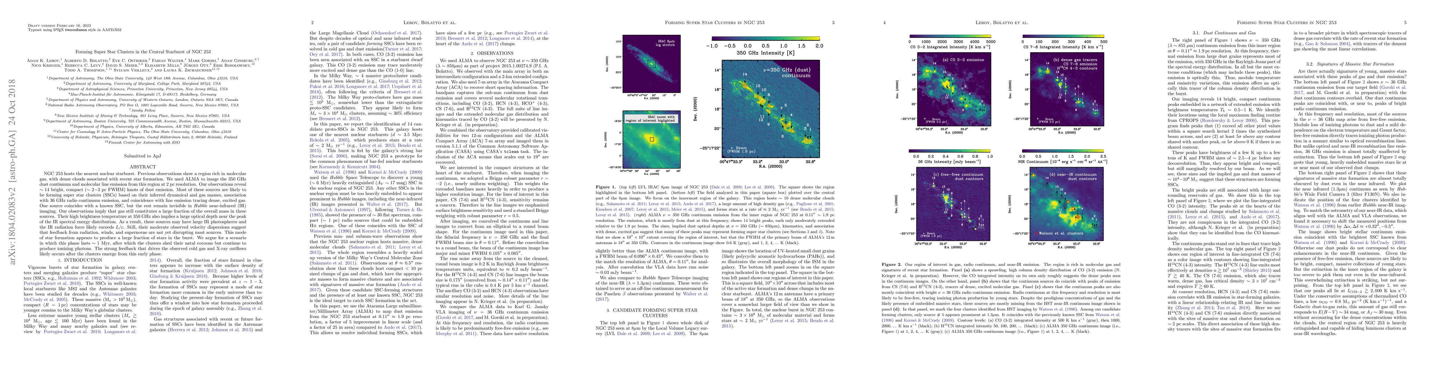 This study using ALMA reveals ~14 compact dust emission knots in NGC 253's central starburst region, likely forming super star clusters (SSCs). Despite their high brightness and gas-rich nature, these SSCs remain invisible in near-infrared imaging, suggesting they are still embedded in dense gas.