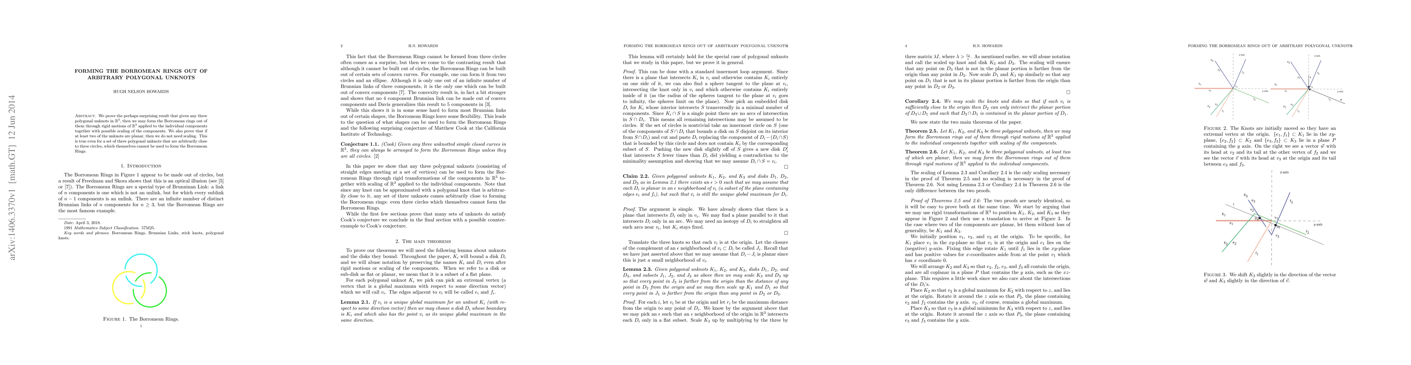 The paper proves that any three polygonal unknots in $\R^3$ can be manipulated via rigid motions and scaling (if necessary) to form the Borromean rings. It also demonstrates that if at least two unknots are planar, scaling is unnecessary.
