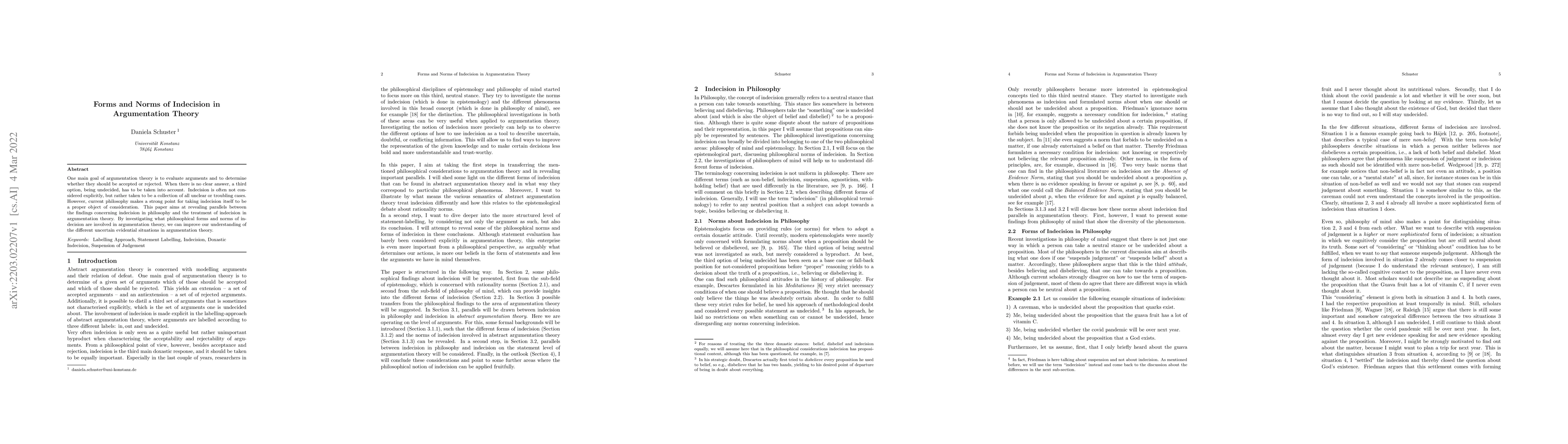 One main goal of argumentation theory is to evaluate arguments and to determine whether they should be accepted or rejected. When there is no clear answer, a third option, being undecided, has to be taken into account. Indecision is often not considered explicitly, but rather taken to be a collection of all unclear or troubling cases. However, current philosophy makes a strong point for taking indecision itself to be a proper object of consideration. This paper aims at revealing parallels between the findings concerning indecision in philosophy and the treatment of indecision in argumentation theory. By investigating what philosophical forms and norms of indecision are involved in argumentation theory, we can improve our understanding of the different uncertain evidential situations in argumentation theory.