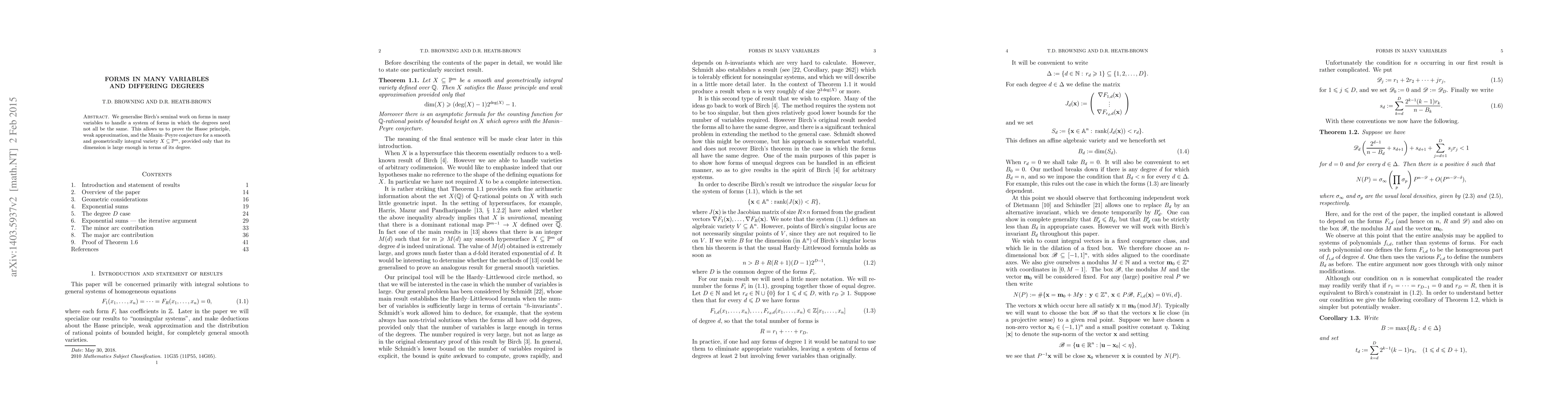 This paper generalises Birch's work on forms in multiple variables to accommodate varying degrees, enabling proofs of the Hasse principle, weak approximation, and the Manin-Peyre conjecture for smooth, geometrically integral projective varieties under certain dimensional conditions.
