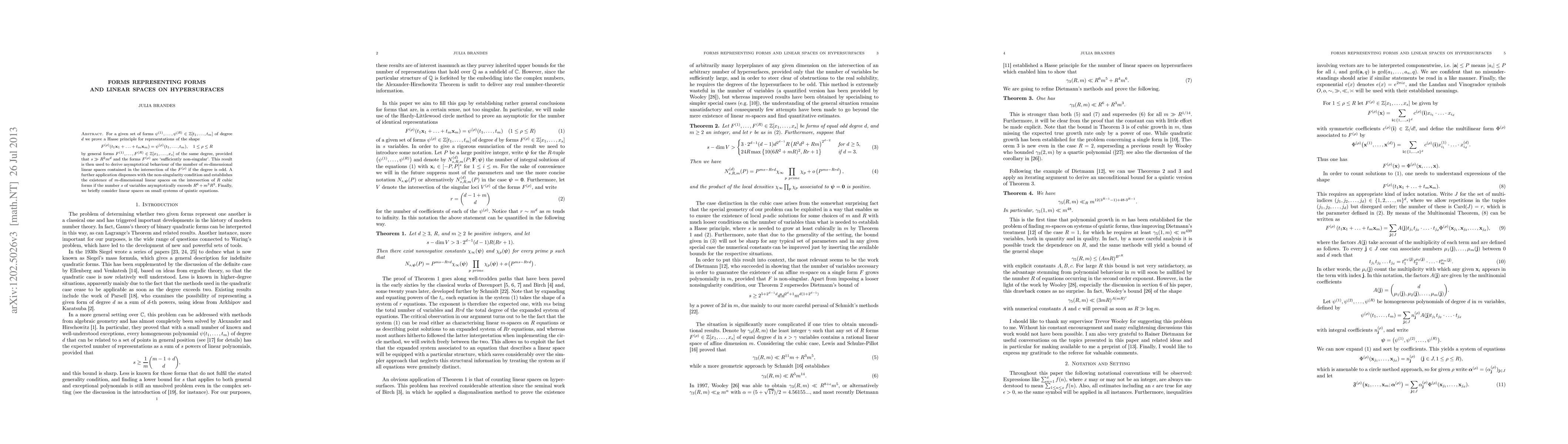 A generalisation of Waring's problem, considered first by Arkhipov and Karatsuba, is the question of representing not an integer, but a given polynomial, as a sum of powers of linear polynomials. We investigate a related problem and prove a Hasse principle for the number of identical representations of a set of given forms by homogeneous polynomials of general shape. The result leads to sizeable improvements for estimates of the number of linear spaces on the intersection of hypersurfaces.