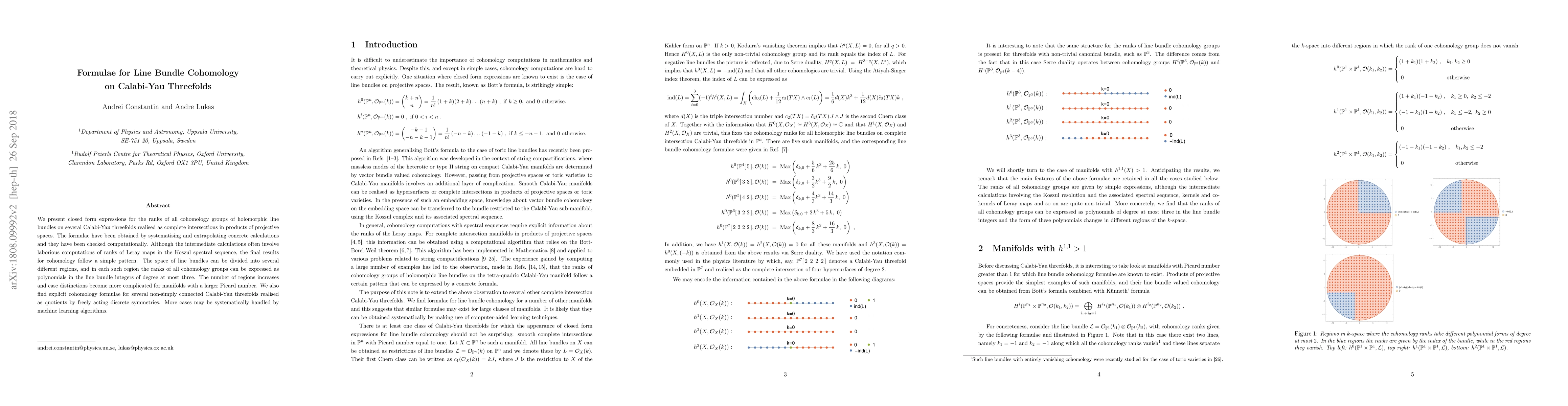 We present closed form expressions for the ranks of all cohomology groups of holomorphic line bundles on several Calabi-Yau threefolds realised as complete intersections in products of projective spaces. The formulae have been obtained by systematising and extrapolating concrete calculations and they have been checked computationally. Although the intermediate calculations often involve laborious computations of ranks of Leray maps in the Koszul spectral sequence, the final results for cohomology follow a simple pattern. The space of line bundles can be divided into several different regions, and in each such region the ranks of all cohomology groups can be expressed as polynomials in the line bundle integers of degree at most three. The number of regions increases and case distinctions become more complicated for manifolds with a larger Picard number. We also find explicit cohomology formulae for several non-simply connected Calabi-Yau threefolds realised as quotients by freely acting discrete symmetries. More cases may be systematically handled by machine learning algorithms.