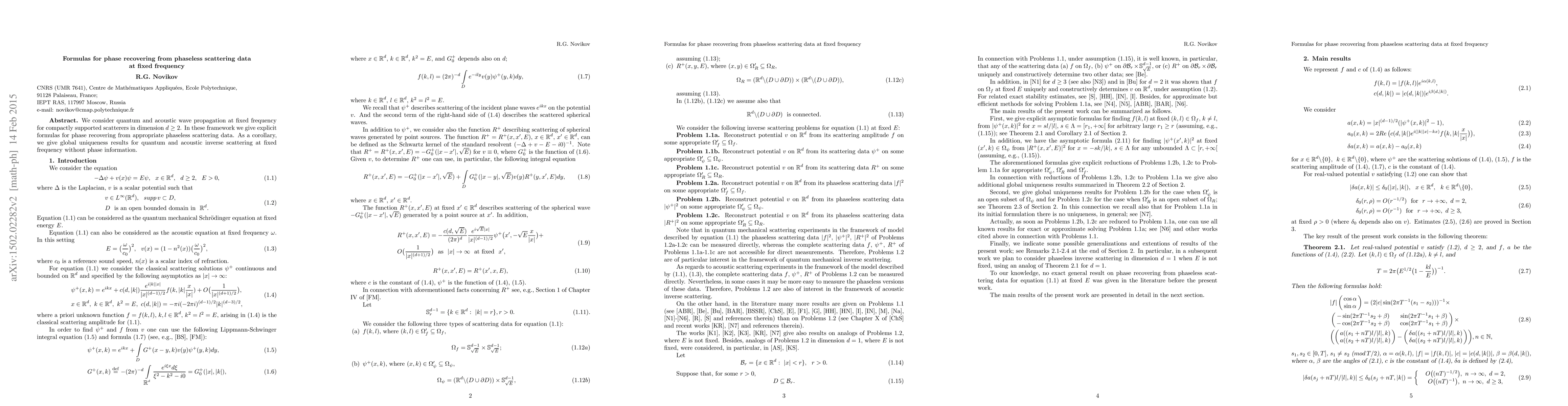 This paper presents explicit formulas for reconstructing the phase of quantum and acoustic waves from phaseless scattering data at a fixed frequency for compactly supported scatterers in dimensions $d\ge 2$. It also establishes global uniqueness for inverse scattering problems at fixed frequency without phase information.