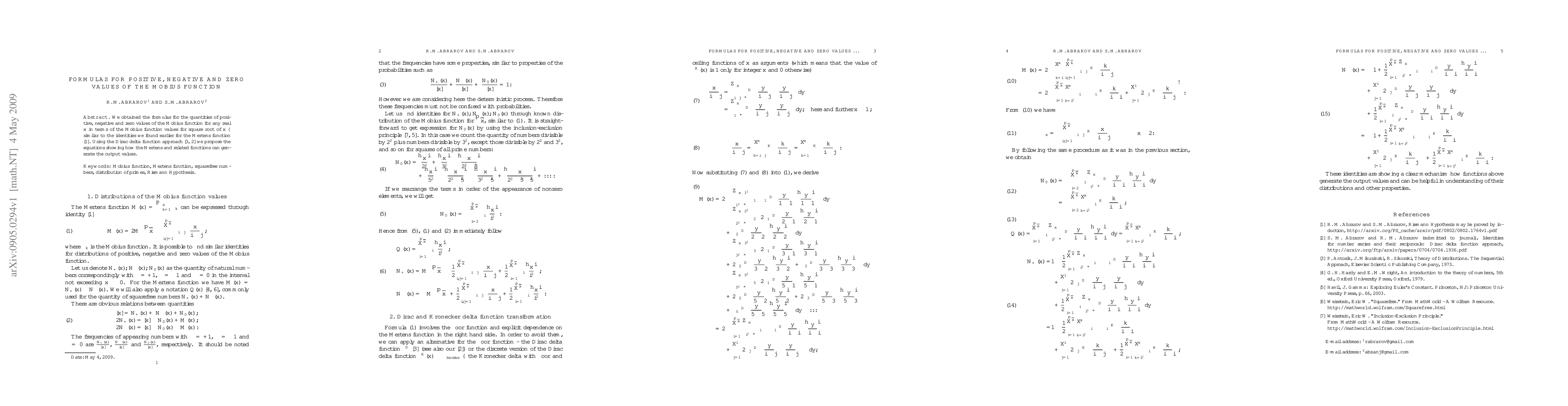 We obtained the formulas for the quantities of positive, negative and zero values of the Mobius function for any real x in terms of the Mobius function values for square root of x - similar to the identities we found earlier for the Mertens function [1]. Using the Dirac delta function approach [3, 2] we propose the equations showing how the Mertens and related functions can generate the output values.