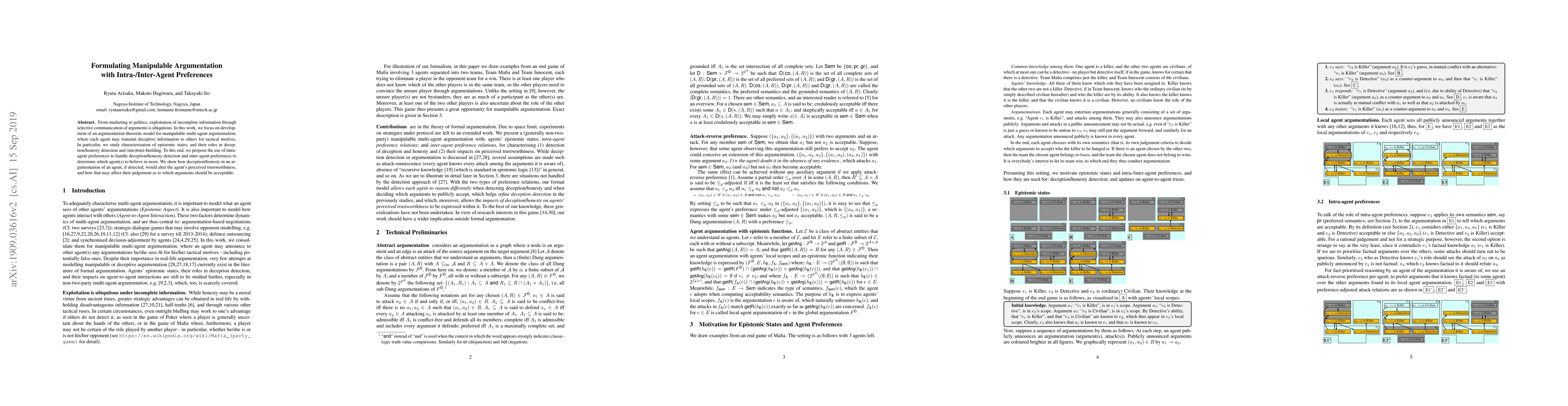 From marketing to politics, exploitation of incomplete information through selective communication of arguments is ubiquitous. In this work, we focus on development of an argumentation-theoretic model for manipulable multi-agent argumentation, where each agent may transmit deceptive information to others for tactical motives. In particular, we study characterisation of epistemic states, and their roles in deception/honesty detection and (mis)trust-building. To this end, we propose the use of intra-agent preferences to handle deception/honesty detection and inter-agent preferences to determine which agent(s) to believe in more. We show how deception/honesty in an argumentation of an agent, if detected, would alter the agent's perceived trustworthiness, and how that may affect their judgement as to which arguments should be acceptable.