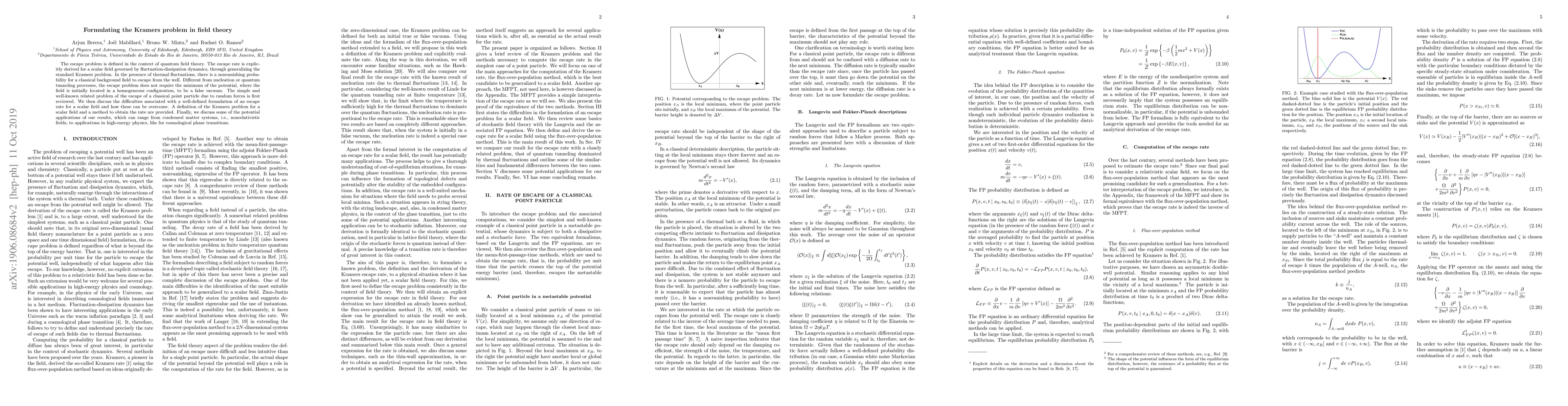 The escape problem is defined in the context of quantum field theory. The escape rate is explicitly derived for a scalar field governed by fluctuation-dissipation dynamics, through generalizing the standard Kramers problem. In the presence of thermal fluctuations, there is a nonvanishing probability for a classical background field, initially located at a minimum of its potential in a homogeneous configuration, to escape from the well. The simple and well-known related problem of the escape of a classical point particle due to random forces is first reviewed. We then discuss the difficulties associated with a well-defined formulation of an escape rate for a scalar field and how these can be overcome. A definition of the Kramers problem for a scalar field and a method to obtain the rate are provided. Finally, we discuss some of the potential applications of our results, which can range from condensed matter systems, i.e., nonrelativistic fields, to applications in high-energy physics, like for cosmological phase transitions.