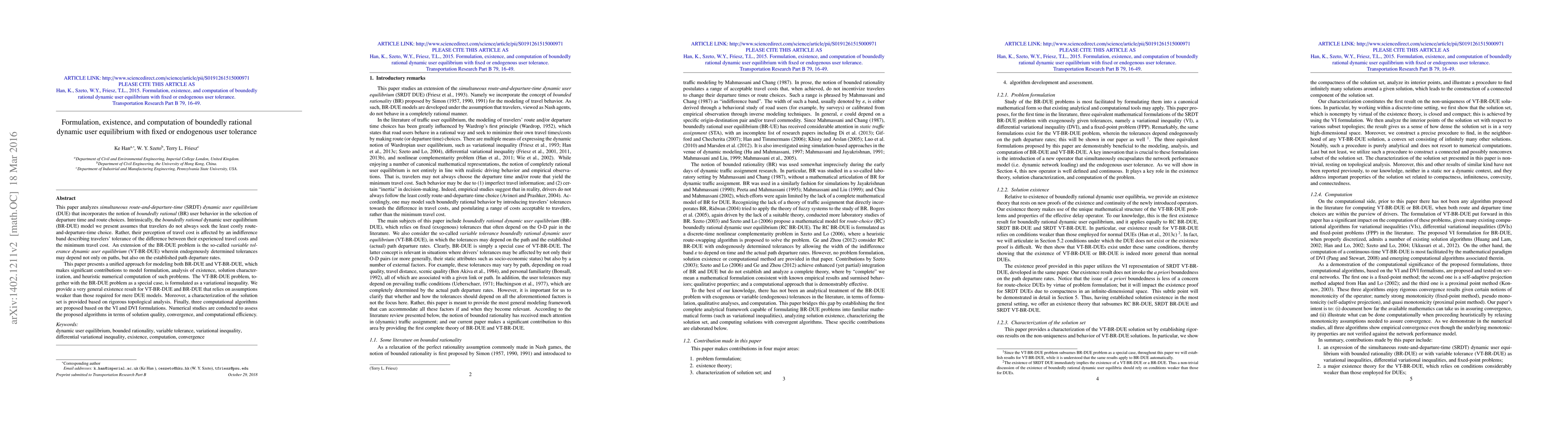 This paper develops a unified approach to modeling boundedly rational dynamic user equilibrium with fixed or endogenous user tolerance, providing existence results, solution characterization, and heuristic computational algorithms for both scenarios.