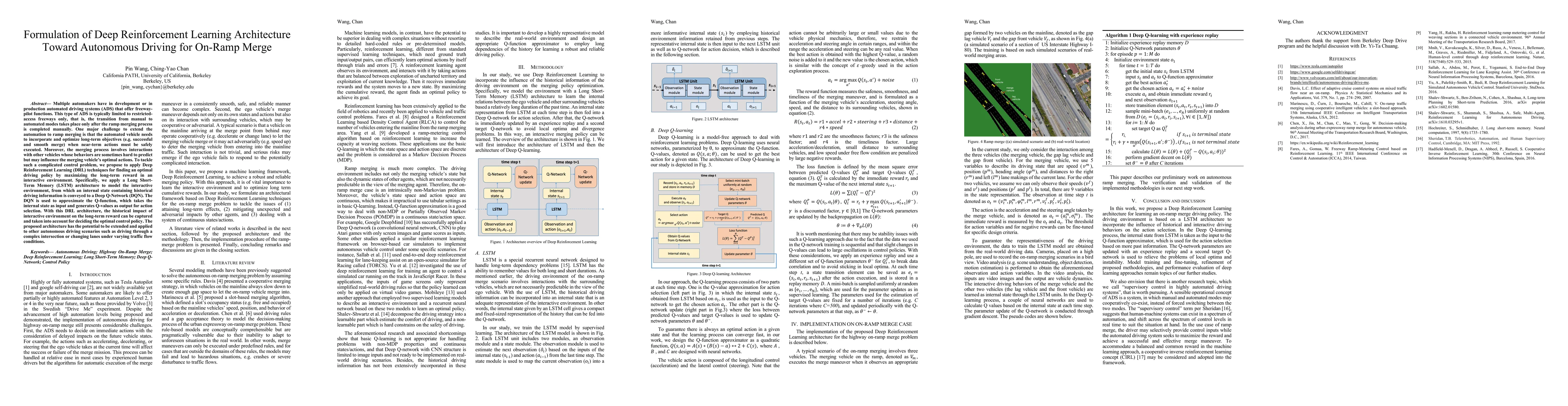 Multiple automakers have in development or in production automated driving systems (ADS) that offer freeway-pilot functions. This type of ADS is typically limited to restricted-access freeways only, that is, the transition from manual to automated modes takes place only after the ramp merging process is completed manually. One major challenge to extend the automation to ramp merging is that the automated vehicle needs to incorporate and optimize long-term objectives (e.g. successful and smooth merge) when near-term actions must be safely executed. Moreover, the merging process involves interactions with other vehicles whose behaviors are sometimes hard to predict but may influence the merging vehicle optimal actions. To tackle such a complicated control problem, we propose to apply Deep Reinforcement Learning (DRL) techniques for finding an optimal driving policy by maximizing the long-term reward in an interactive environment. Specifically, we apply a Long Short-Term Memory (LSTM) architecture to model the interactive environment, from which an internal state containing historical driving information is conveyed to a Deep Q-Network (DQN). The DQN is used to approximate the Q-function, which takes the internal state as input and generates Q-values as output for action selection. With this DRL architecture, the historical impact of interactive environment on the long-term reward can be captured and taken into account for deciding the optimal control policy. The proposed architecture has the potential to be extended and applied to other autonomous driving scenarios such as driving through a complex intersection or changing lanes under varying traffic flow conditions.