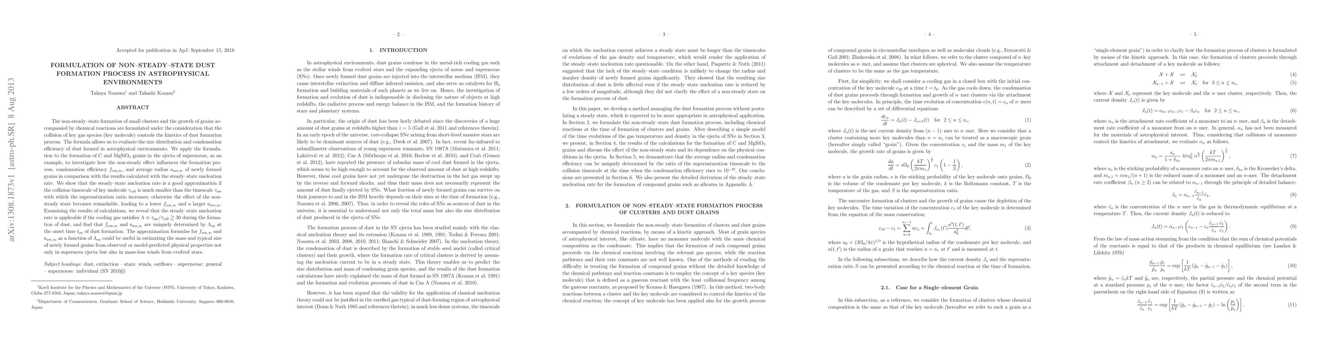This paper formulates the non-steady-state dust formation process in astrophysical environments, showing that the steady-state nucleation rate is a good approximation when the collision timescale of key molecules is much smaller than the supersaturation increase timescale. It finds that the steady-state rate is applicable if the cooling gas satisfies a condition where the ratio of these timescales exceeds 30.