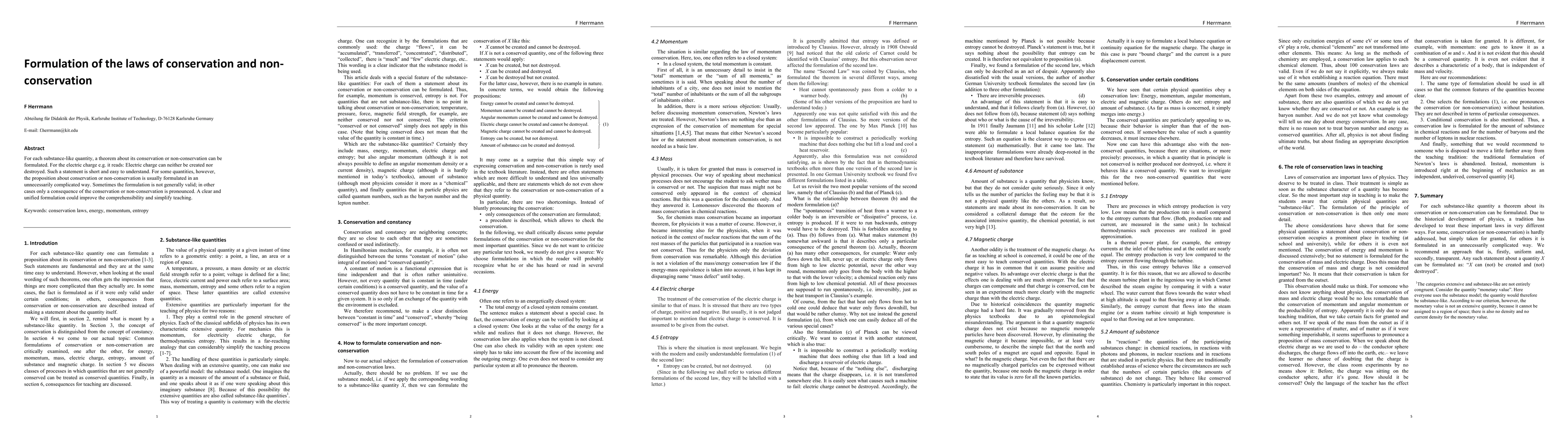 This paper discusses the formulation of conservation laws for various quantities, highlighting the need for clear and simplified statements to enhance understanding and teaching. It aims to unify and clarify existing complex propositions about conservation and non-conservation.