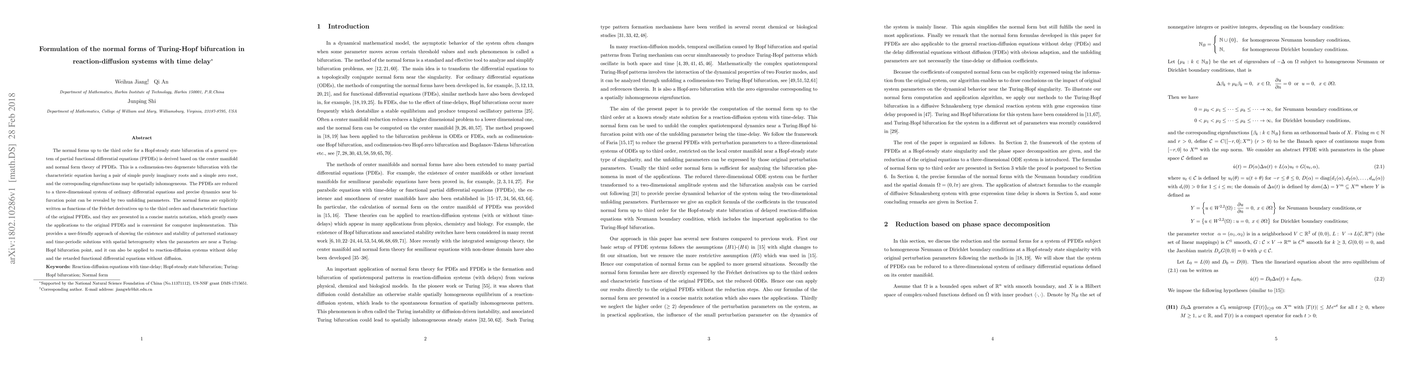 The normal forms up to the third order for a Hopf-steady state bifurcation of a general system of partial functional differential equations (PFDEs) is derived based on the center manifold and normal form theory of PFDEs. This is a codimension-two degenerate bifurcation with the characteristic equation having a pair of simple purely imaginary roots and a simple zero root, and the corresponding eigenfunctions may be spatially inhomogeneous. The PFDEs are reduced to a three-dimensional system of ordinary differential equations and precise dynamics near bifurcation point can be revealed by two unfolding parameters. The normal forms are explicitly written as functions of the Fr\'echet derivatives up to the third orders and characteristic functions of the original PFDEs, and they are presented in a concise matrix notation, which greatly eases the applications to the original PFDEs and is convenient for computer implementation. This provides a user-friendly approach of showing the existence and stability of patterned stationary and time-periodic solutions with spatial heterogeneity when the parameters are near a Turing-Hopf bifurcation point, and it can also be applied to reaction-diffusion systems without delay and the retarded functional differential equations without diffusion.