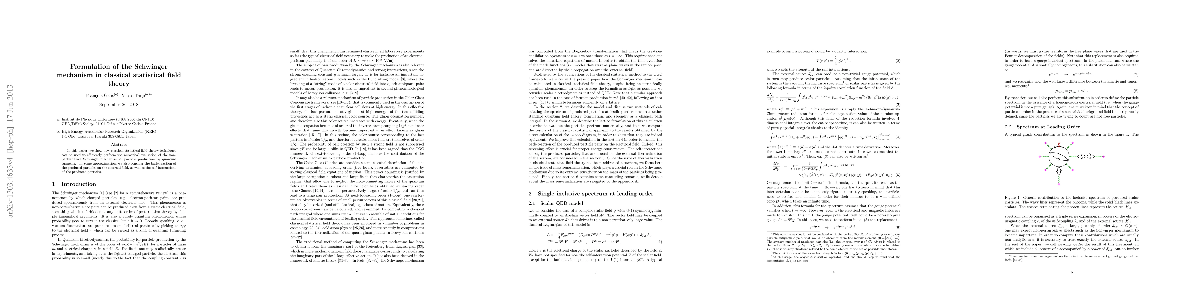 In this paper, we show how classical statistical field theory techniques can be used to efficiently perform the numerical evaluation of the non-perturbative Schwinger mechanism of particle production by quantum tunneling. In some approximation, we also consider the back-reaction of the produced particles on the external field, as well as the self-interactions of the produced particles.