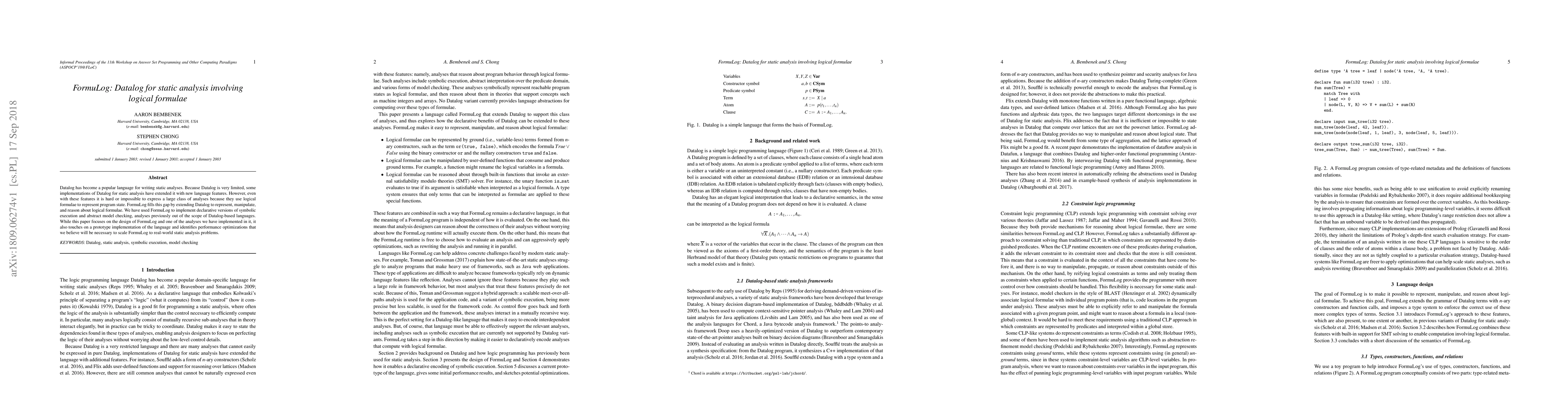 FormuLog extends Datalog to incorporate logical formulae, enabling the representation and manipulation of complex program states. This extension allows for the implementation of advanced static analyses like symbolic execution and abstract model checking, previously unattainable with Datalog.