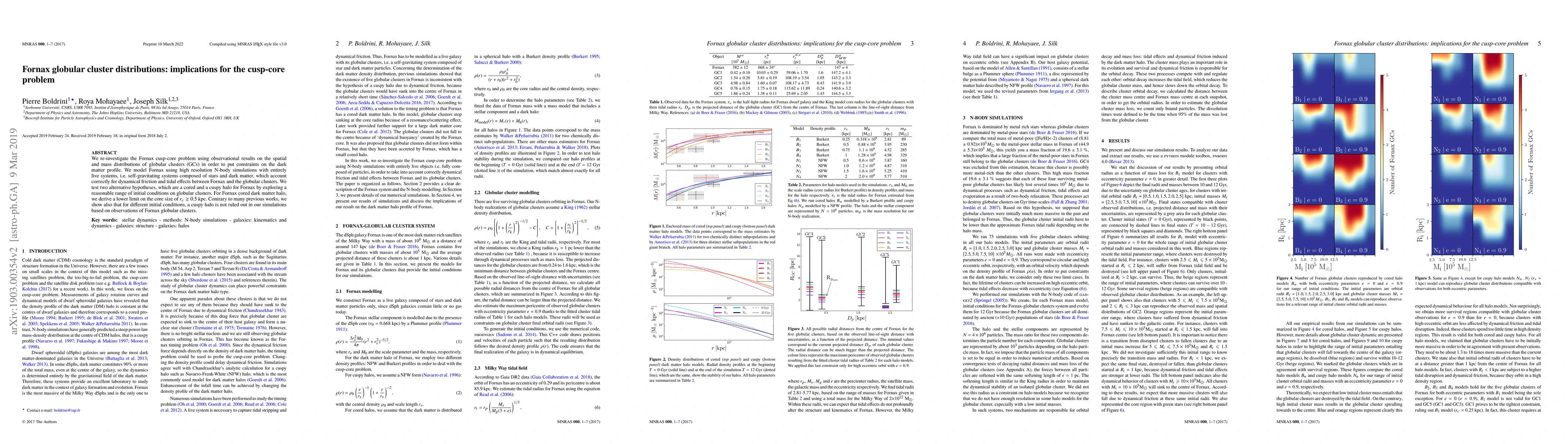 This paper re-examines the Fornax globular cluster distributions to constrain the dark matter profile, finding that a cored dark matter halo requires a core size of at least 0.5 kpc. Contrary to previous studies, it suggests that a cuspy halo is still plausible given the observed globular cluster distributions.
