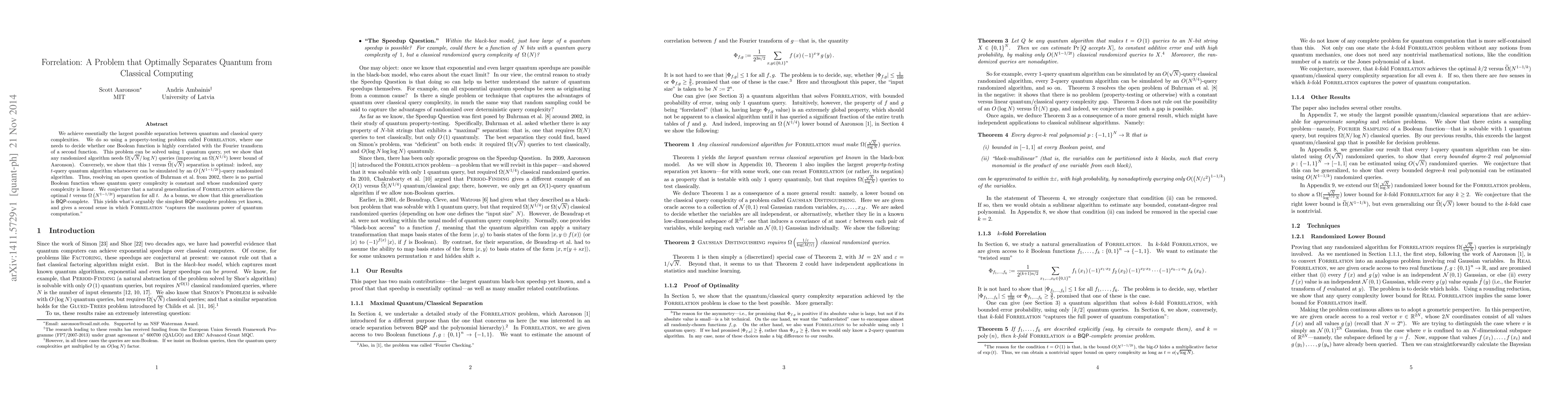 This research presents a problem called Forrelation, which distinctly separates quantum and classical computing powers. Quantum algorithms solve this problem using just one query, while classical algorithms need approximately the square root of N queries divided by log(N). The study also proves this separation is optimal, ruling out any constant-query quantum advantage over linear-query classical algorithms for a generalized Forrelation problem. This generalization is also shown to be BQP-complete, potentially introducing the simplest BQP-complete problem known so far.
