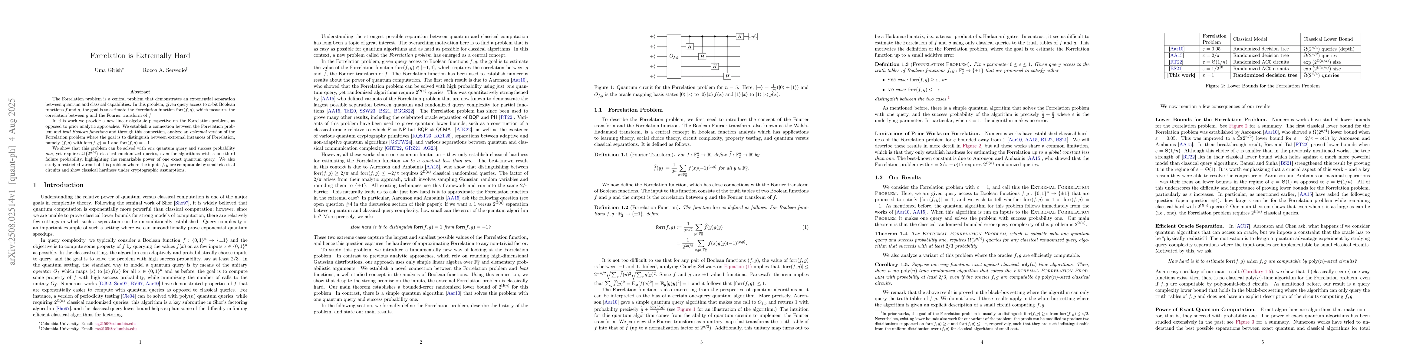 The paper introduces a novel approach to understanding the Forrelation problem through linear algebra, linking it to bent Boolean functions and providing classical hardness results under cryptographic assumptions.