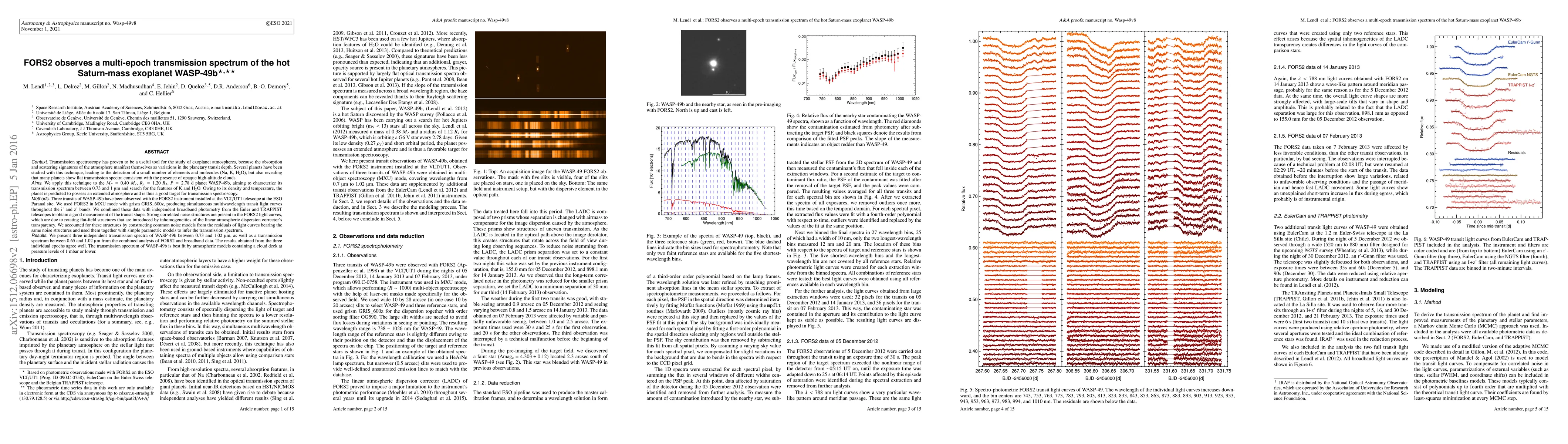This study uses FORS2 to observe three transits of the hot Saturn-mass exoplanet WASP-49b, aiming to characterize its transmission spectrum and search for K and H$_2$O features. The results indicate a flat transmission spectrum best explained by models with a cloud deck at low pressure levels, consistent across multiple epochs.