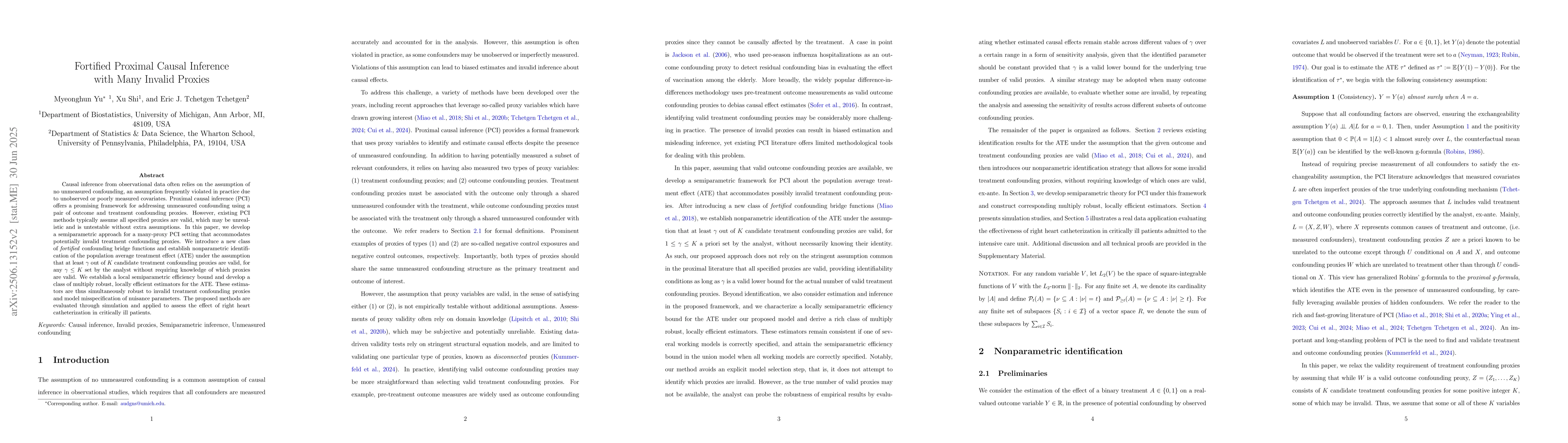 Causal inference from observational data often relies on the assumption of no unmeasured confounding, an assumption frequently violated in practice due to unobserved or poorly measured covariates. Proximal causal inference (PCI) offers a promising framework for addressing unmeasured confounding using a pair of outcome and treatment confounding proxies. However, existing PCI methods typically assume all specified proxies are valid, which may be unrealistic and is untestable without extra assumptions. In this paper, we develop a semiparametric approach for a many-proxy PCI setting that accommodates potentially invalid treatment confounding proxies. We introduce a new class of fortified confounding bridge functions and establish nonparametric identification of the population average treatment effect (ATE) under the assumption that at least $\gamma$ out of $K$ candidate treatment confounding proxies are valid, for any $\gamma \leq K$ set by the analyst without requiring knowledge of which proxies are valid. We establish a local semiparametric efficiency bound and develop a class of multiply robust, locally efficient estimators for the ATE. These estimators are thus simultaneously robust to invalid treatment confounding proxies and model misspecification of nuisance parameters. The proposed methods are evaluated through simulation and applied to assess the effect of right heart catheterization in critically ill patients.