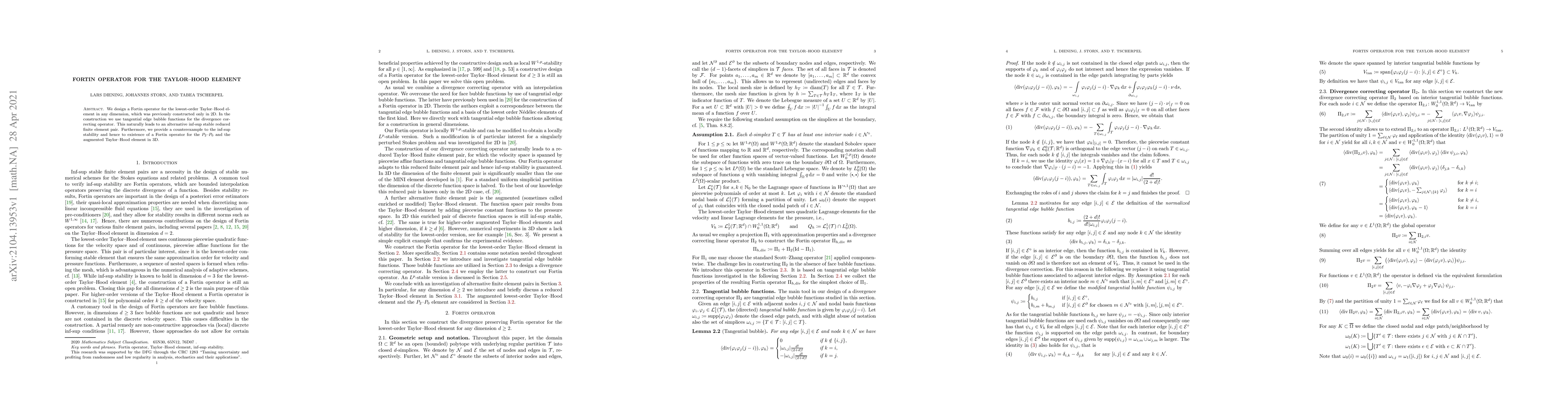 This paper introduces a Fortin operator for the lowest-order Taylor-Hood element in any dimension, extending its previous 2D construction, and utilizes tangential edge bubble functions for the divergence correction. It also presents an alternative inf-sup stable reduced finite element pair and refutes the inf-sup stability for $P_2$-$P_0$ and augmented Taylor-Hood elements in 3D.