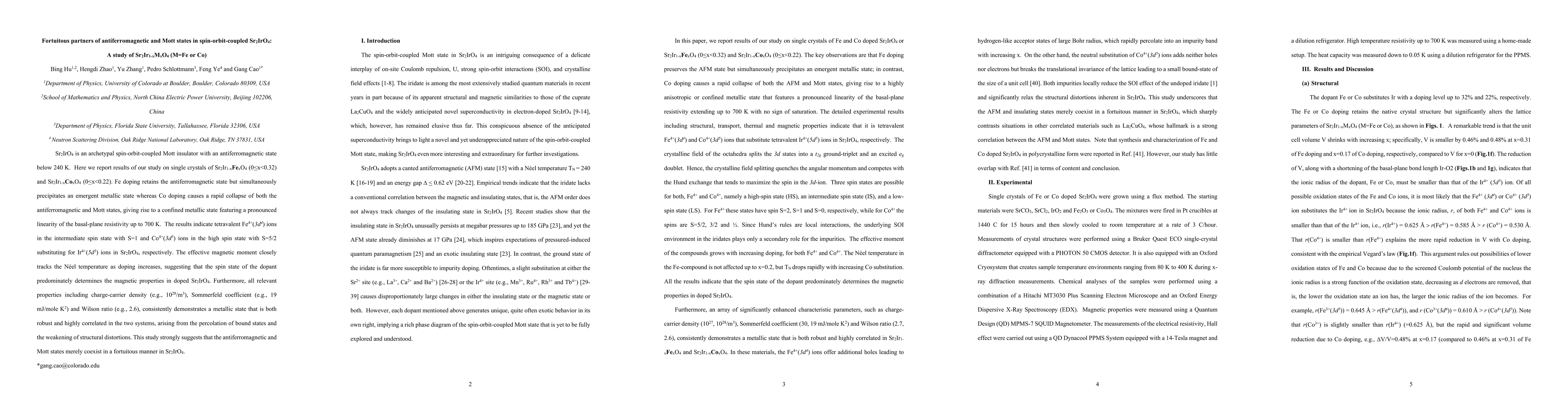 This study investigates the effects of Fe and Co doping on Sr2IrO4, revealing that Fe doping maintains antiferromagnetic and induces metallic states, while Co doping rapidly destroys both states, leading to a metallic state with linear resistivity. The findings suggest that the spin state of the dopant primarily determines the magnetic properties, indicating a fortuitous coexistence of antiferromagnetic and Mott states in Sr2IrO4.