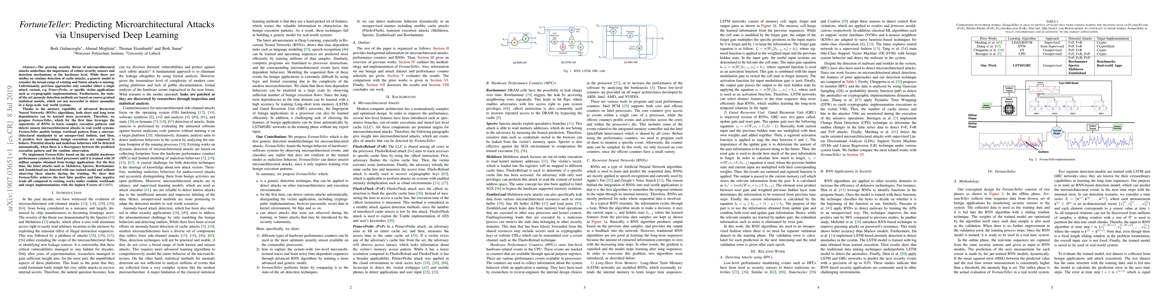 Researchers created FortuneTeller, a deep learning model that detects microarchitectural attacks in real-world systems by analyzing execution patterns, achieving an F-score of 0.9970.