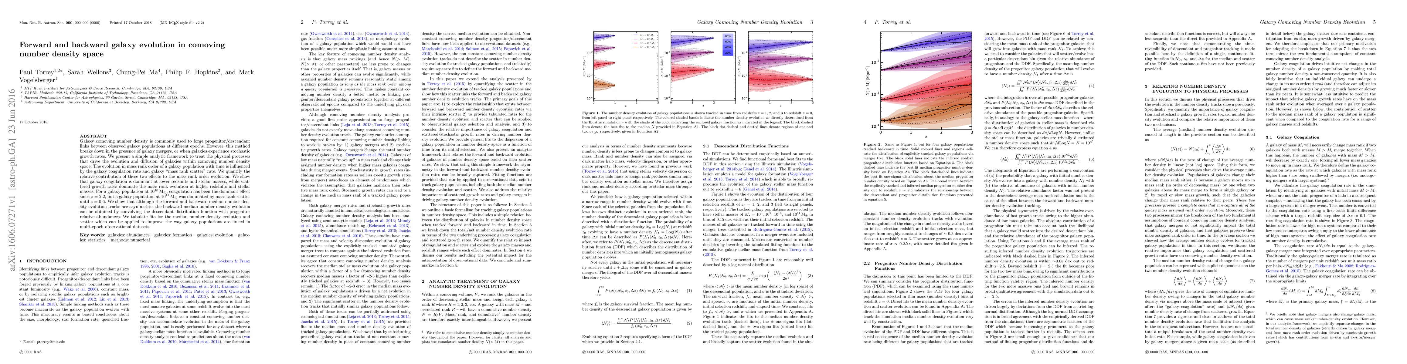 Galaxy comoving number density is commonly used to forge progenitor/descendant links between observed galaxy populations at different epochs. However, this method breaks down in the presence of galaxy mergers, or when galaxies experience stochastic growth rates. We present a simple analytic framework to treat the physical processes that drive the evolution and diffusion of galaxies within comoving number density space. The evolution in mass rank order of a galaxy population with time is influenced by the galaxy coagulation rate and galaxy "mass rank scatter" rate. We quantify the relative contribution of these two effects to the mass rank order evolution. We show that galaxy coagulation is dominant at lower redshifts and stellar masses, while scattered growth rates dominate the mass rank evolution at higher redshifts and stellar masses. For a galaxy population at $10^{10} M_\odot$, coagulation has been the dominant effect since $z=2.2$, but a galaxy population at $10^{11} M_\odot$ was dominated by mass rank scatter until $z=0.6$. We show that although the forward and backward median number density evolution tracks are asymmetric, the backward median number density evolution can be obtained by convolving the descendant distribution function with progenitor relative abundances. We tabulate fits for the median number density evolution and scatter which can be applied to improve the way galaxy populations are linked in multi-epoch observational datasets.