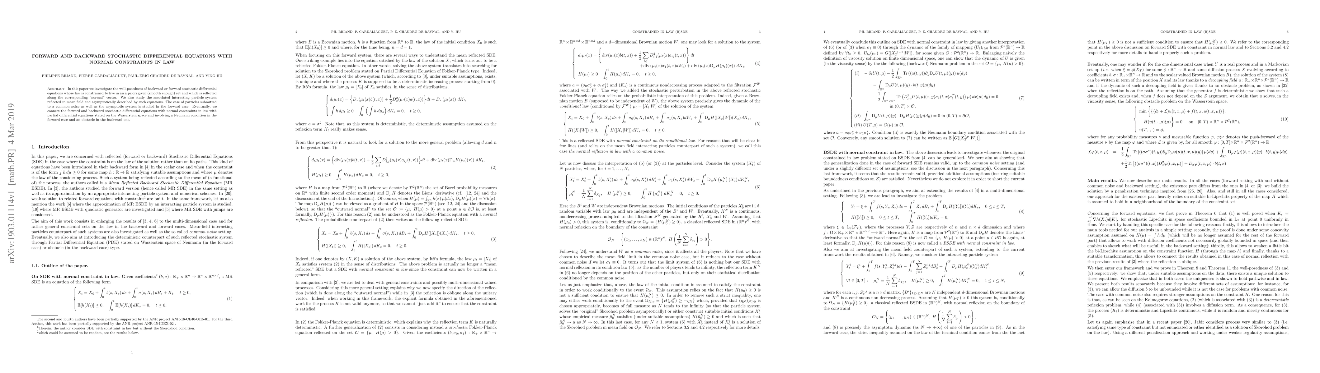 This paper examines the well-posedness of forward and backward stochastic differential equations with normal constraints on their law, exploring reflected particle systems and connections to partial differential equations on the Wasserstein space with Neumann and obstacle conditions.