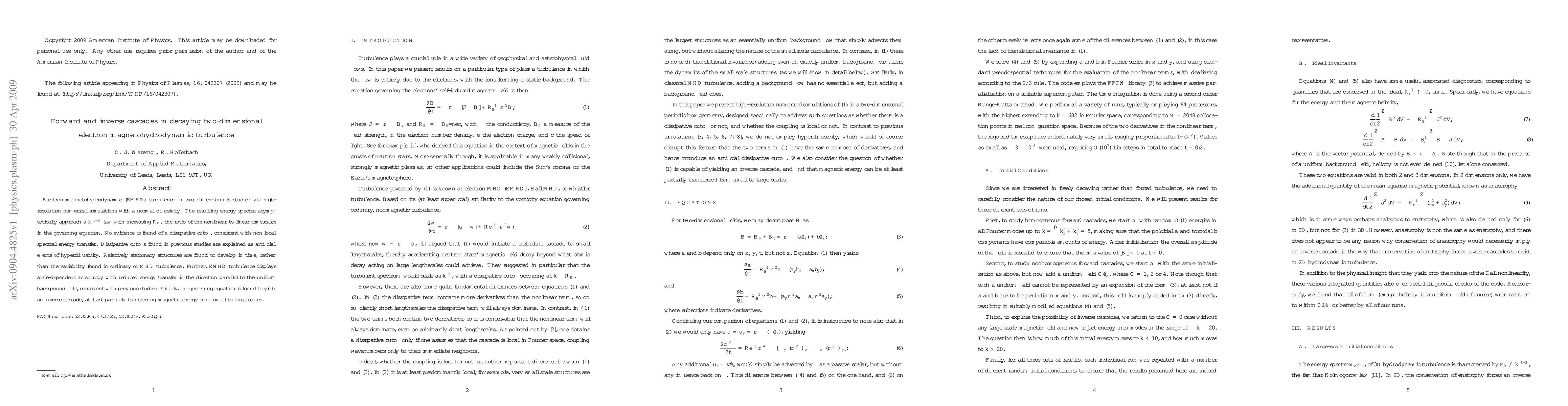 This paper investigates two-dimensional electron magnetohydrodynamic (EMHD) turbulence, revealing that energy spectra follow a $k^{-5/2}$ law without a dissipative cutoff due to non-local spectral energy transfer. It also finds an inverse cascade transferring magnetic energy from small to large scales, contrasting with the variability seen in ordinary MHD turbulence.