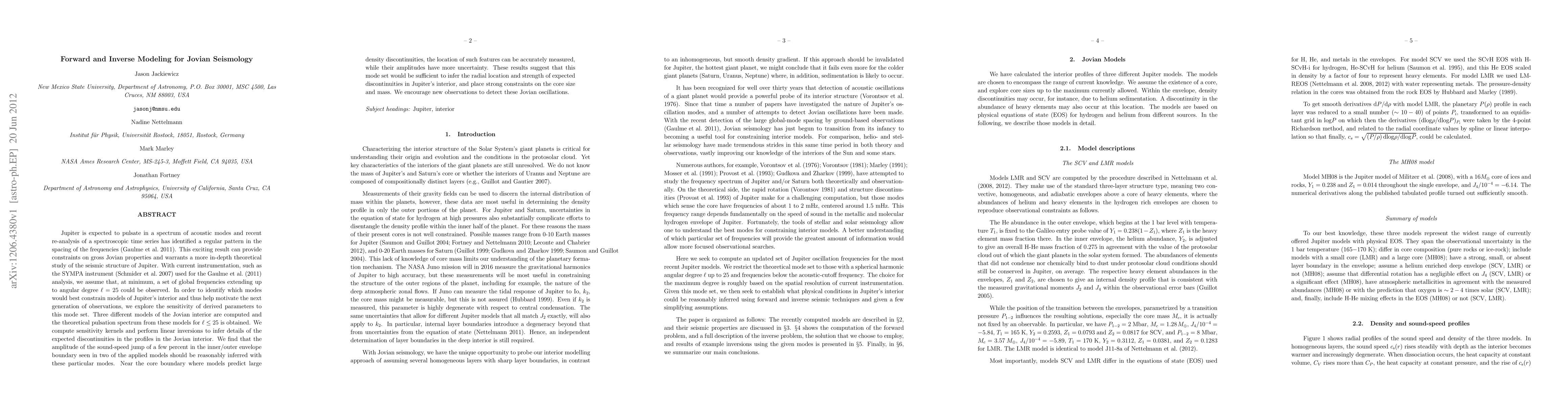 Jupiter is expected to pulsate in a spectrum of acoustic modes and recent re-analysis of a spectroscopic time series has identified a regular pattern in the spacing of the frequencies \citep{gaulme2011}. This exciting result can provide constraints on gross Jovian properties and warrants a more in-depth theoretical study of the seismic structure of Jupiter. With current instrumentation, such as the SYMPA instrument \citep{schmider2007} used for the \citet{gaulme2011} analysis, we assume that, at minimum, a set of global frequencies extending up to angular degree $\ell=25$ could be observed. In order to identify which modes would best constrain models of Jupiter's interior and thus help motivate the next generation of observations, we explore the sensitivity of derived parameters to this mode set. Three different models of the Jovian interior are computed and the theoretical pulsation spectrum from these models for $\ell\leq 25$ is obtained. We compute sensitivity kernels and perform linear inversions to infer details of the expected discontinuities in the profiles in the Jovian interior. We find that the amplitude of the sound-speed jump of a few percent in the inner/outer envelope boundary seen in two of the applied models should be reasonably inferred with these particular modes. Near the core boundary where models predict large density discontinuities, the location of such features can be accurately measured, while their amplitudes have more uncertainty. These results suggest that this mode set would be sufficient to infer the radial location and strength of expected discontinuities in Jupiter's interior, and place strong constraints on the core size and mass. We encourage new observations to detect these Jovian oscillations.