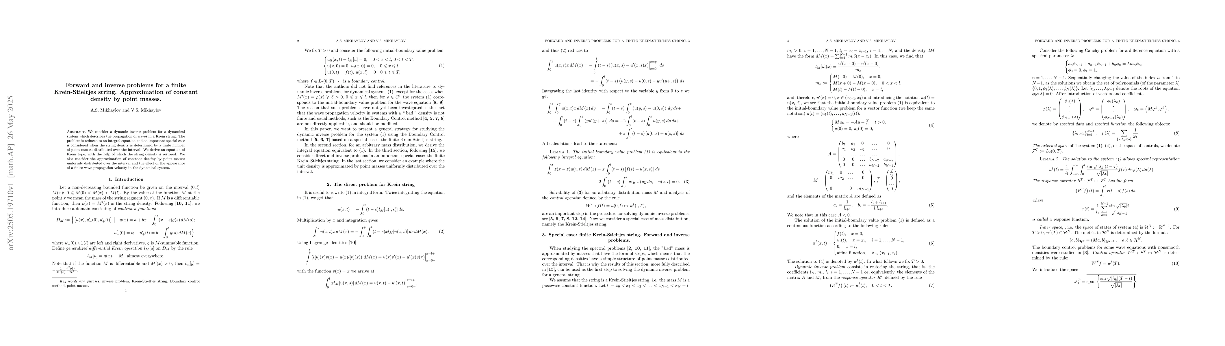 Researchers study a dynamic inverse problem for a Krein string with point masses representing constant density, deriving an equation to restore the string density and exploring its implications.