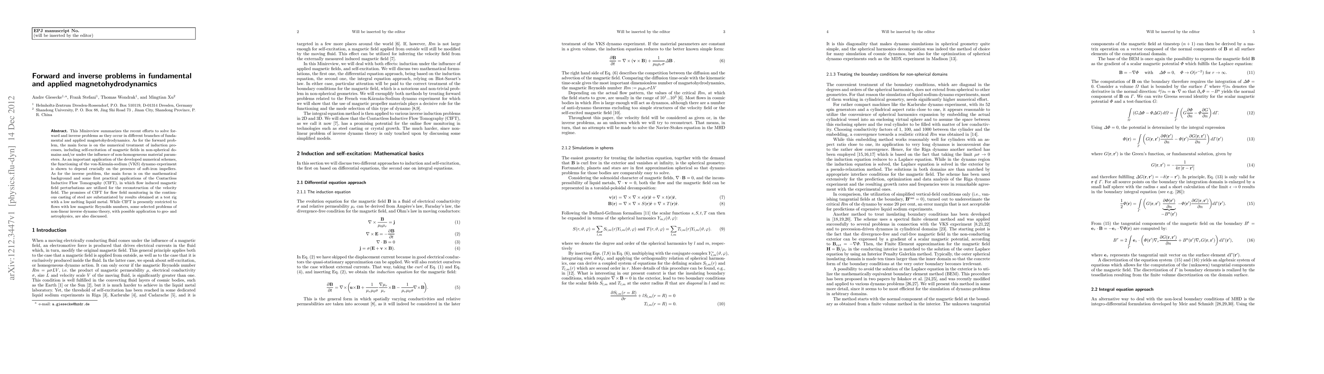 This Minireview summarizes the recent efforts to solve forward and inverse problems as they occur in different branches of fundamental and applied magnetohydrodynamics. As for the forward problem, the main focus is on the numerical treatment of induction processes, including self-excitation of magnetic fields in non-spherical domains and/or under the influence of non-homogeneous material parameters. As an important application of the developed numerical schemes, the functioning of the von-K\'{a}rm\'{a}n-sodium (VKS) dynamo experiment is shown to depend crucially on the presence of soft-iron impellers. As for the inverse problem, the main focus is on the mathematical background and some first practical applications of the Contactless Inductive Flow Tomography (CIFT), in which flow induced magnetic field perturbations are utilized for the reconstruction of the velocity field. The promises of CIFT for flow field monitoring in the continuous casting of steel are substantiated by results obtained at a test rig with a low melting liquid metal. While CIFT is presently restricted to flows with low magnetic Reynolds numbers, some selected problems of non-linear inverse dynamo theory, with possible application to geo- and astrophysics, are also discussed.